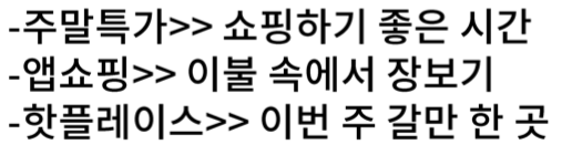 - 즉, 어떤 상품인지 가격이 얼만지 할인율이 크다면 몇%인지