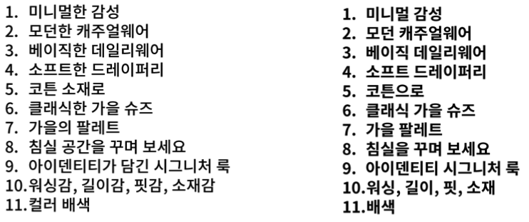 - 시즌을 잘 살릴 것(계절 이야기 + 기분, 상황, 관계 등)