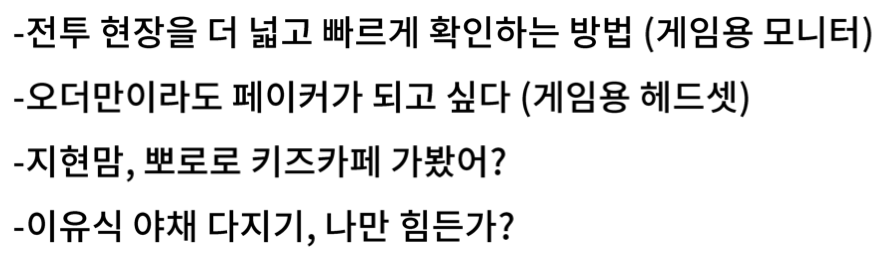 ex) 맞벌이 부부의 저녁에 필요한 간편 식사