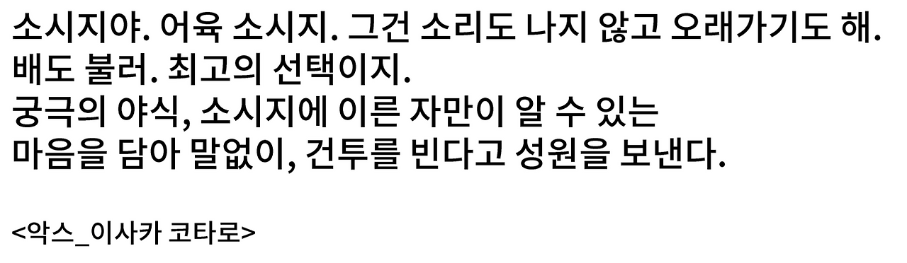 ex) 독특하진 않지만 친근한 -> 독특함 대신 친근함으로