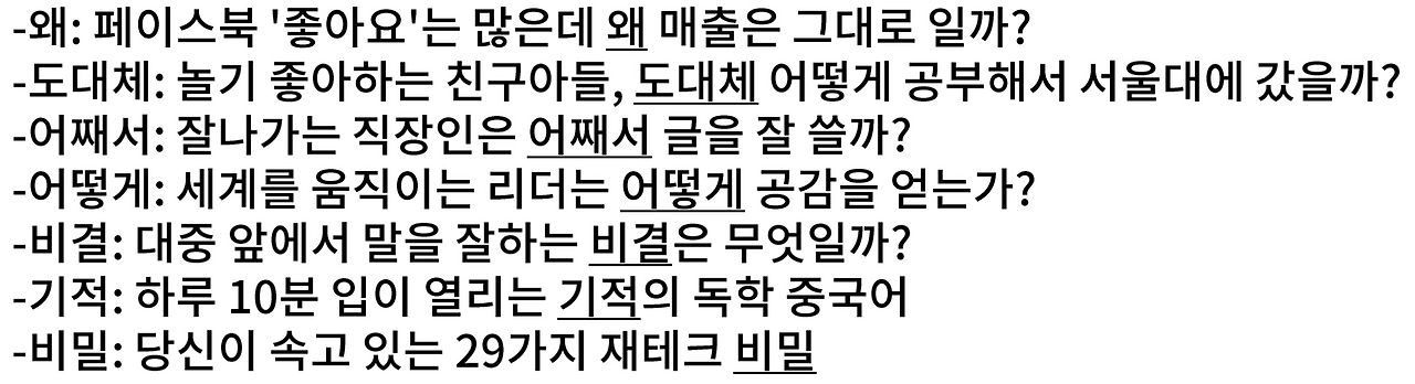 이를 위해서는 다양한 문장과 단어를 잘 수집해 둬야하는 데 가장 효과적인 것이 목차이다.