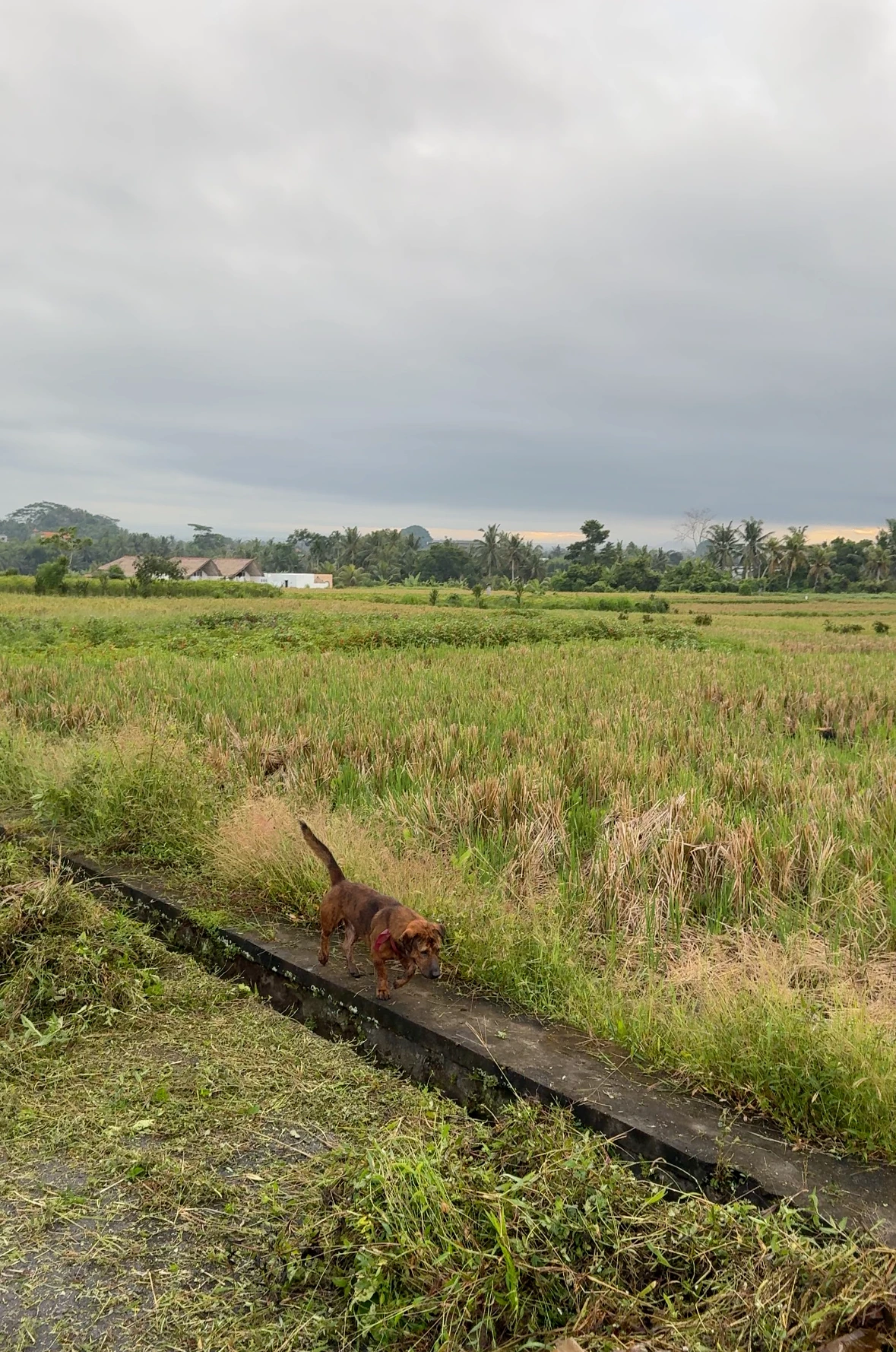 조금은 구불구불한 주택가를 또 5분여를 더 달리자 양 옆으로 확 트이는 시야에 들어오는 넓디넓은 논. 우리나라에서도 많이 봤던 논인데 발리 논은 왜 그렇게도 달라 보이던지. 왜 그렇게도 더 특별하게 보이던지. 아마도 여행이 부리는 마법일 것이다. 마침 농로에서는 예초기로 제초 작업이 한창이었는데 그 때문인지 아침 공기에 진한 풀내음마저 더해져 마치 피톤치드와 같은 버프를 받으며 기분 좋은 조깅을 이어갈 수 있었다. 제초 작업을 하던 현지 인부들과 자유롭게 게으른 걸음을 옮기는 현지 댕댕이들을 지나치는 재미는 덤.
