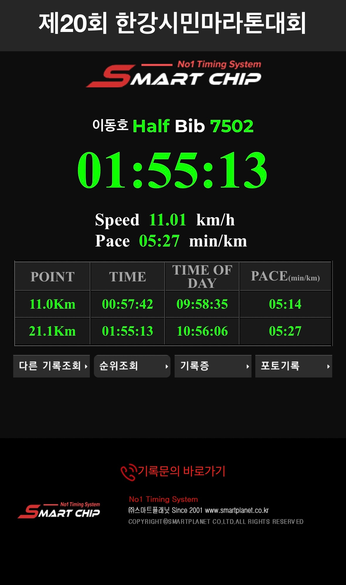 목표했던 2시간 언저리보다 훨씬 좋은 기록이었다. 2시간 언더라니.