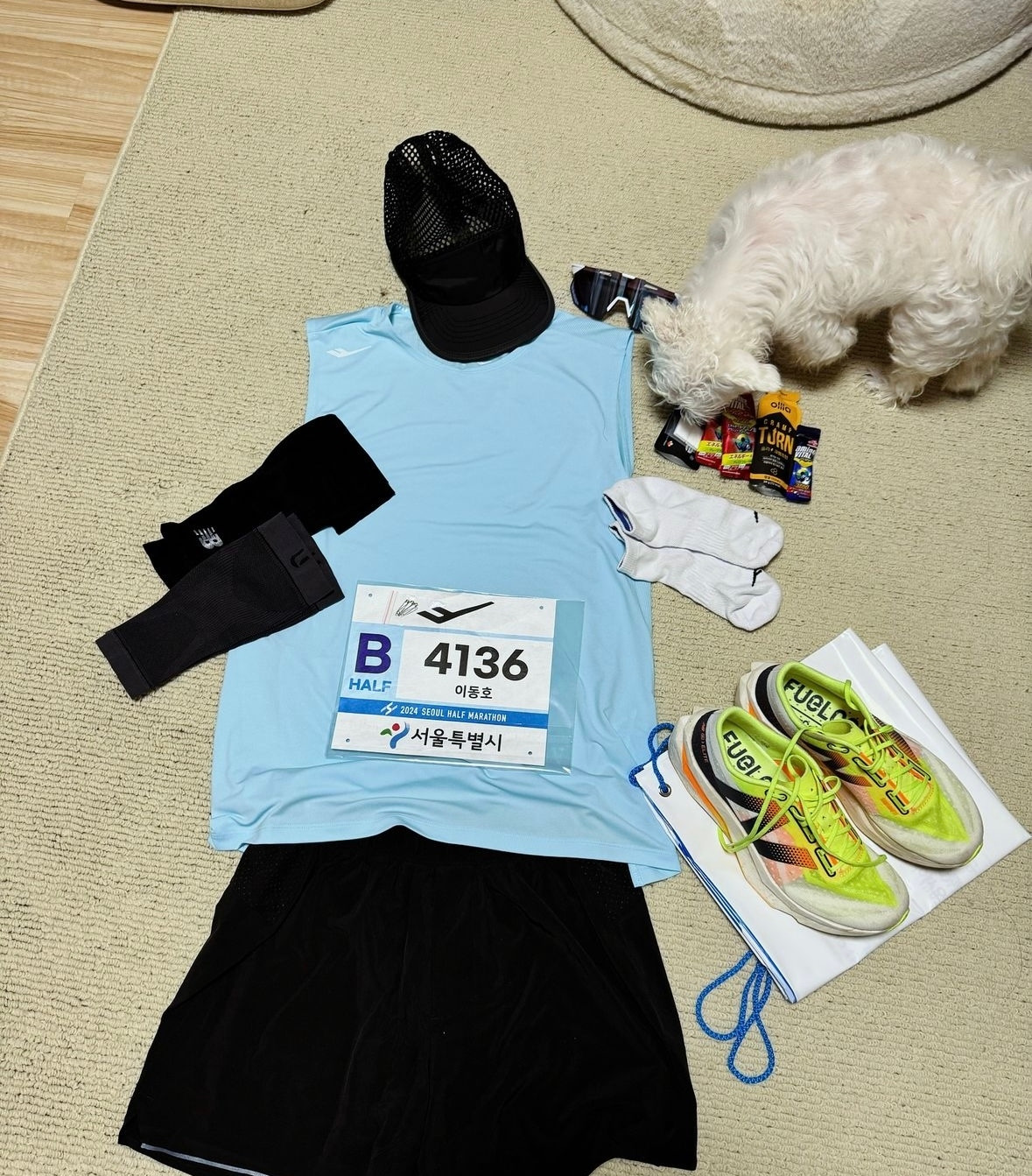 나는 이제 막 NRC(Nike Run Club) 마일리지 1,000km를 넘긴 런린이 수준 밖에 안되긴 하지만 고글, 싱글렛, 암 슬리브, 3인치 쇼츠에 마지막으로 카본화까지 신어주면 뭔가 내가 엘리트 선수가 된 것처럼 멋져 보이는 것 같고 빠르게 잘 달릴 수 있을 것만 같아서 기분이가 조크든요. :)