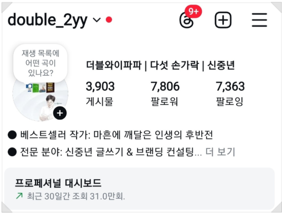 인스타그램에도 당일 게시글과 예약 글을 올리고, 짧게 필사도 합니다.