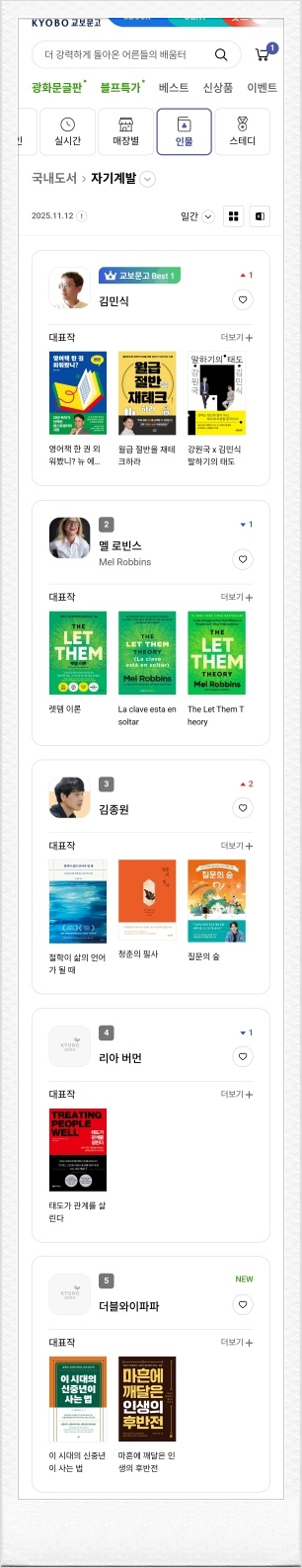 작가별 영향력에 따라 매겨지는 인물 베스트 순위도 있었습니다.