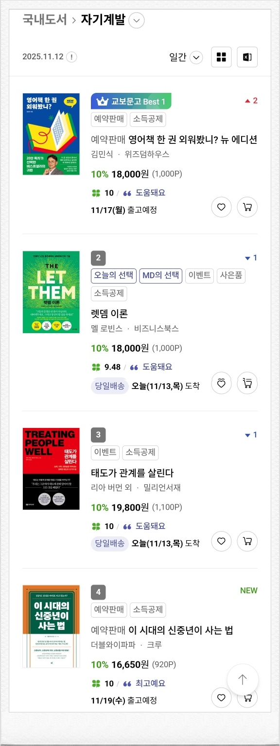 어제 기준으로 자기계발 분야 일간 베스트 4위에 올랐습니다.