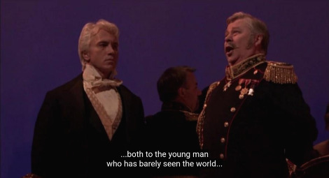 아 미치도록 얄미운 오네긴! 바리톤 드미트리 흐보로스토프스키는 보는 내내 쥐어박고 싶고 걷어 차고 싶을 만큼 나쁜남자 역을 훌륭하게 해낸다. 그의 아름다운 은발도 오네긴 그 자체이다. 상대를 깔보고, 잘난 체하고, 시니컬하고, 장난기 있고, 가벼운 악의에 찬 표정들을 어쩜 그리 완벽하게 표현해 내는지 보는 내내 눈을 뗄 수가 없다. 극이 끝나고 환하게 웃는 인터뷰까지 다 보고 완전히 팬이 돼버렸다. 아무래도 DVD를 사야 할 듯.