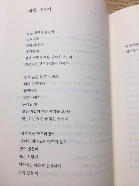 다행히도 요즘엔 문학, 특히 시에 대한 관심들이 많아져서 그런지 좋은 강연과 모임들이 많아 진 것 같다. 작은 책방들에서 이루어지는 소소한 모임들. 시에 대한 어려움을 토로하고, 시에 대한 아름다움을 이야기하는 모임들이 많아지는 것은 나 같은 이들에겐 좋은 기회이다. 이해가 되는 것들은 천천히 씹어 삼키고 이해가 되지 않는 것들에 대해 함께 이야기를 나누는 것은 '시'를 음미하는 가장 좋은 방법이겠지.