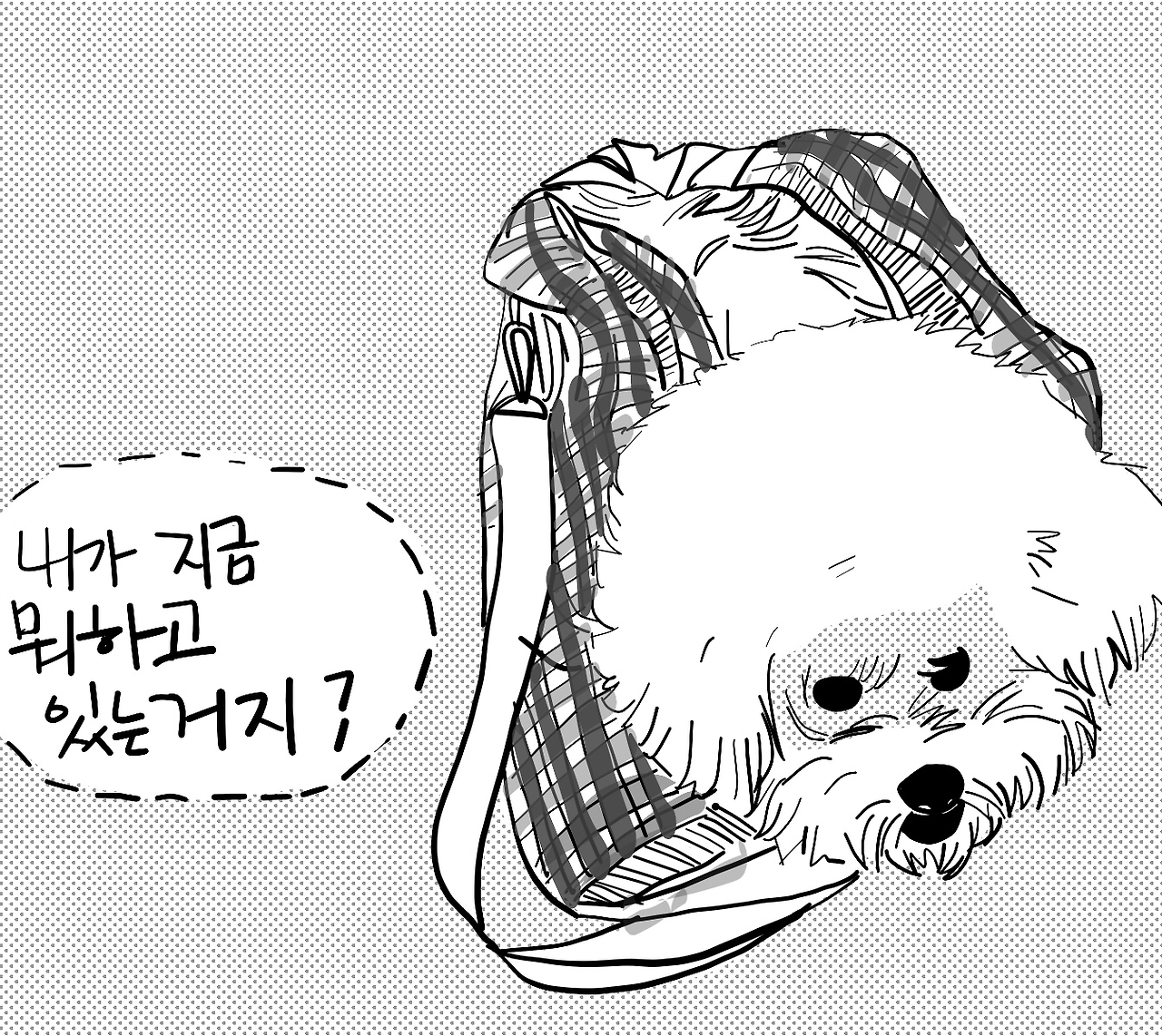 기내에 타려면 가방에 들어가는 연습을 해야 하는데, 저 안에서도 ‘대체 내가 뭐하고 있는 거지?’ 하는 표정.