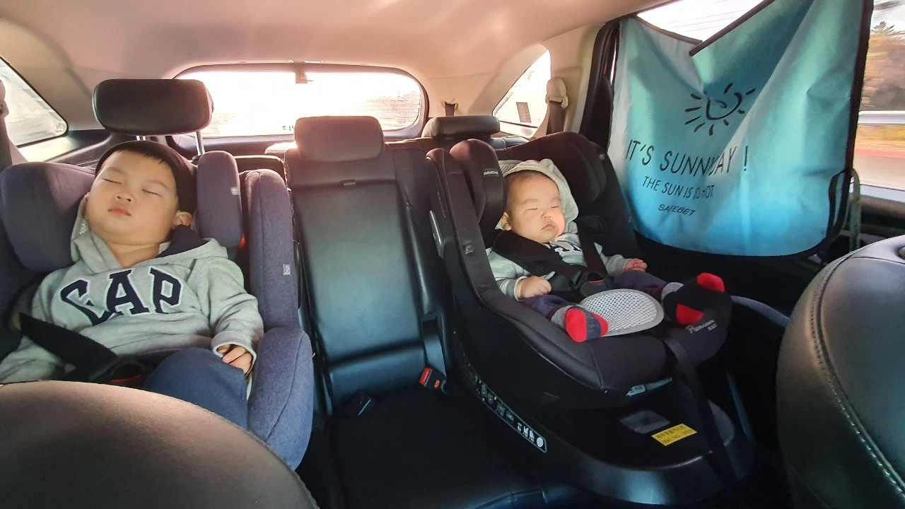 아직 뚱뚱한 몸뚱이를 이겨낼 방법을 몰라 뒤집지도 못하는 둘째와 사방팔방 구르면서 자는 첫째를 따로 재우려니 방이 2개 있는 콘도가 제격이다 싶어 섭지코지에 있는 리조트를 3박 예약했다. 연말이라 꽤 비싼 값을 지불해야 했는데 아주 최신식은 아니었지만 화장실이 두 개라서 편리했고, 위치가 마음에 들었다. 카시트를 두 개나 설치해야 하니까 7인승 SUV를 빌렸고 긴 이동거리에 지쳐버린 아들들은 렌터카에서 곯아떨어졌다. 모처럼 조용한 뒷좌석에 우리 부부는 오붓한 드라이브를 즐기며 숙소에 도착했다.