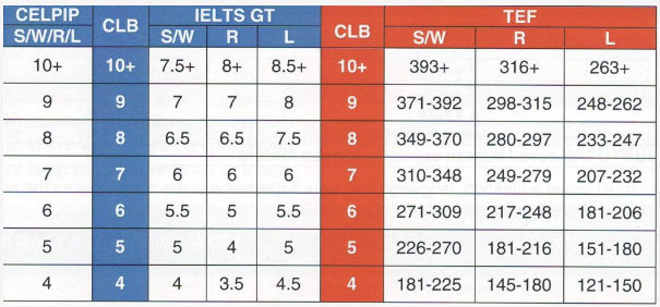 그럼 어느 정도 영어 실력이 있어야 하느냐가 또 궁금하시겠죠? 다다익선이라고 잘하면 잘할수록 좋겠지만, 그러다간 영어 공부만 하다 영영 캐나다엔 오지도 말라는 소리로 들릴 수 있어요. 제가 생각하는 기본 수준은 CLB (Canadian Language Benchmarks) 5라고 생각해요. 정확하게 딱 저만큼만 하고 오면 된다고 말하기는 힘든 게, 유학을 준비하는 분들은 학교에서 입학 수준으로 요구하는 점수가 있고 (그게 대부분 아이엘츠 아카데믹 Overall 6.0이고 CLB 7 임), 유학이 아닌 어학연수나 영주권을 위한 취업으로 오시려는 분들은 CLB 기준 최소 5는 되어야 주정부 이민이나 EE (Express Entry) 진행을 생각해 볼 수 있기 때문이죠. 영어 수준 지표에 대해서는 아래와 같이 정리해 볼 수 있어요.