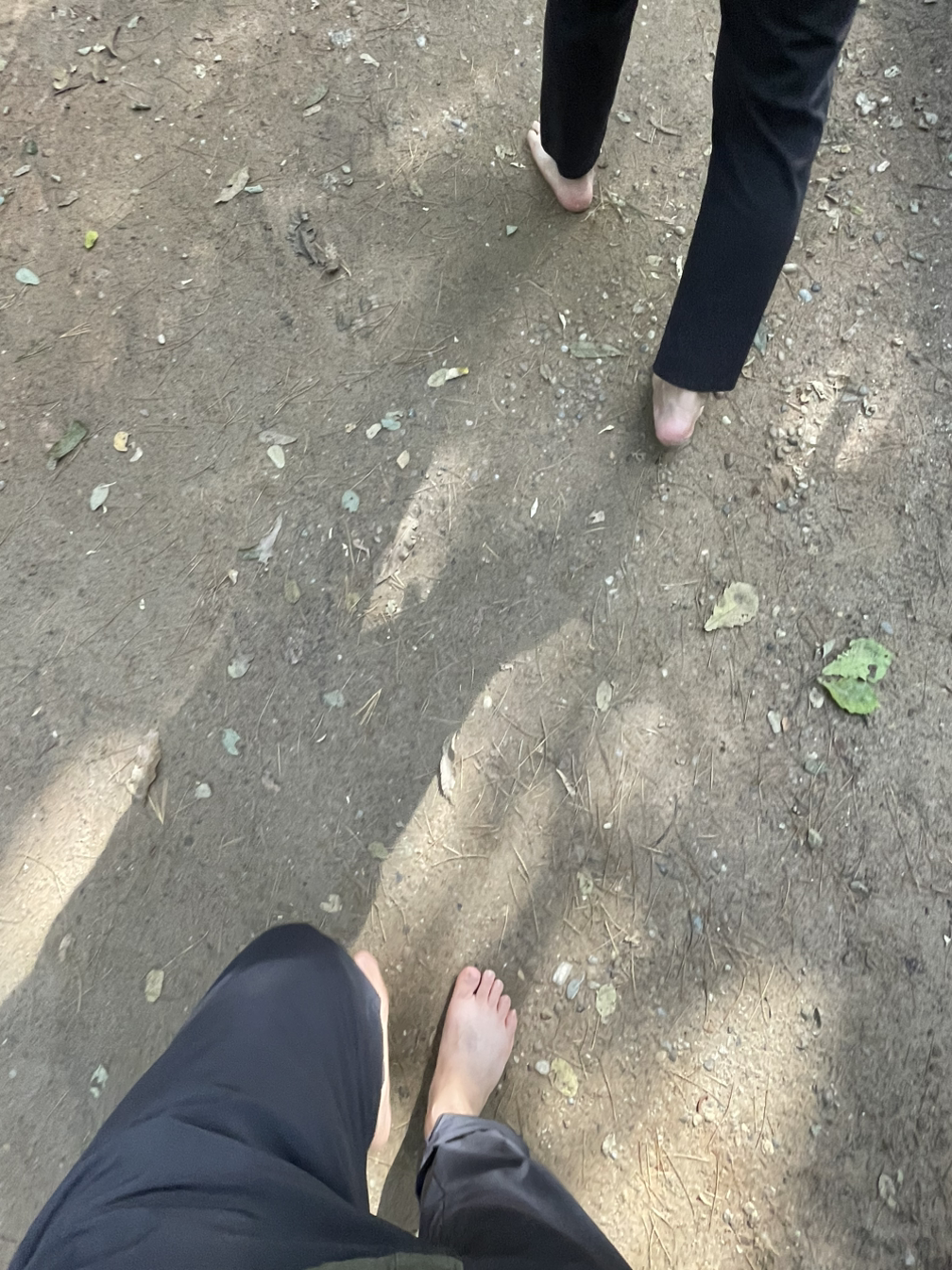 두런두런 얘기를 나누는 사이 해발 300여 미터 정상을 거쳐 내려와 있다. 친구는 자주 가는 맨발산행이라 익숙하지만 혹시나 하며 연신 내 걱정을 해준다.