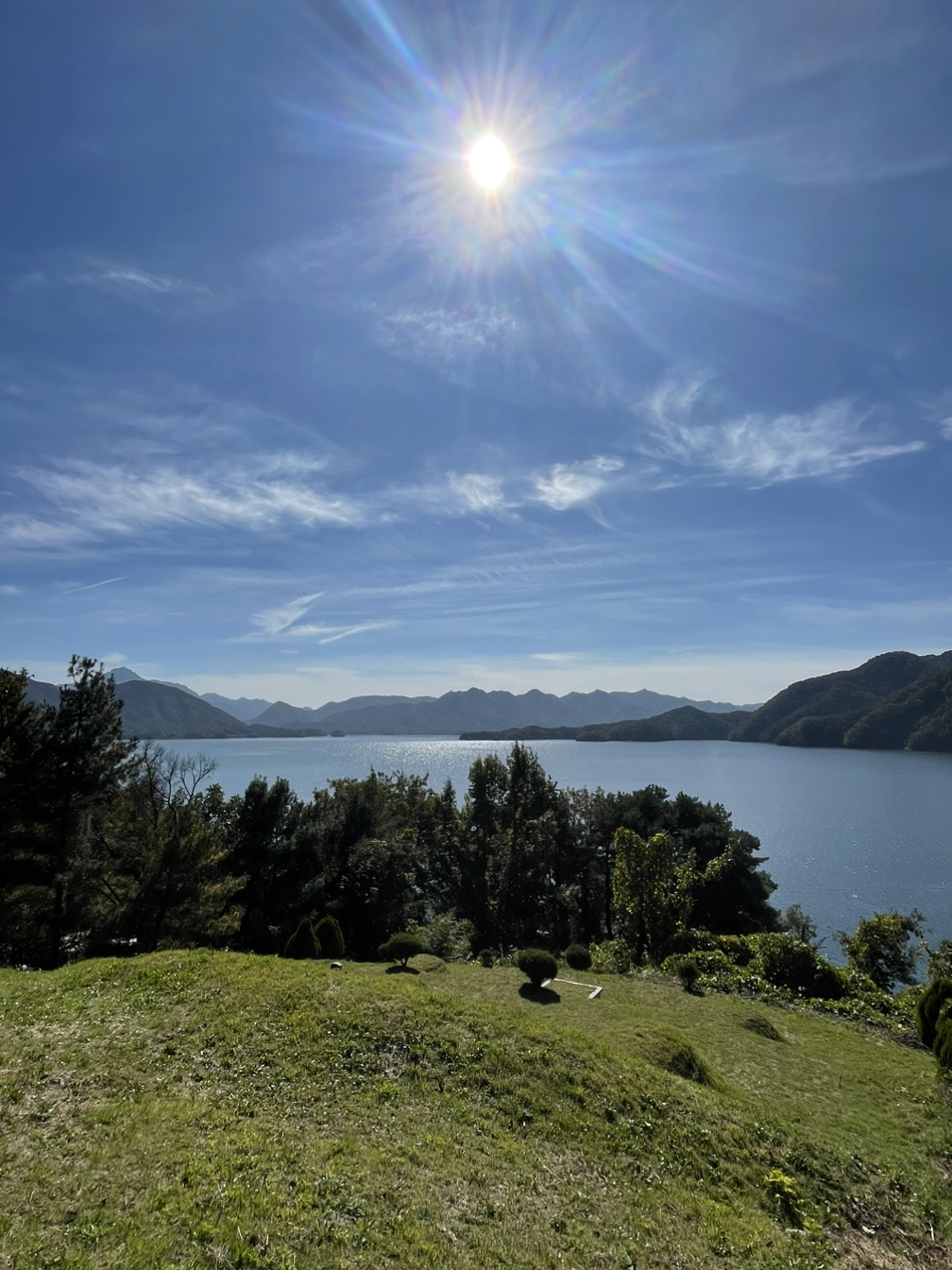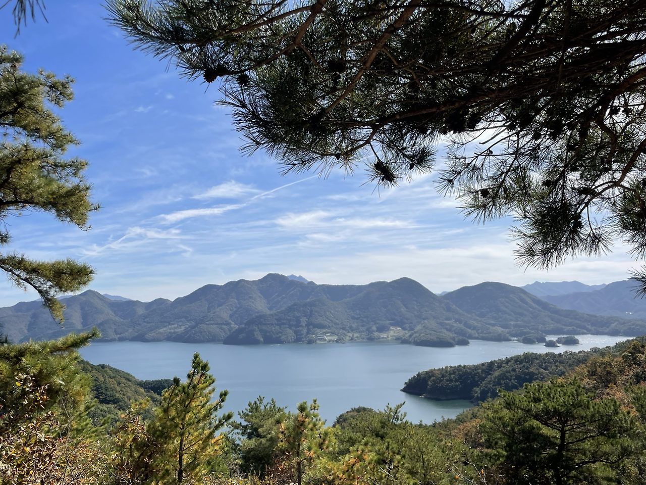 산봉우리들이 섬이 되었다. 호수를 내륙의 바다라 할만하다.