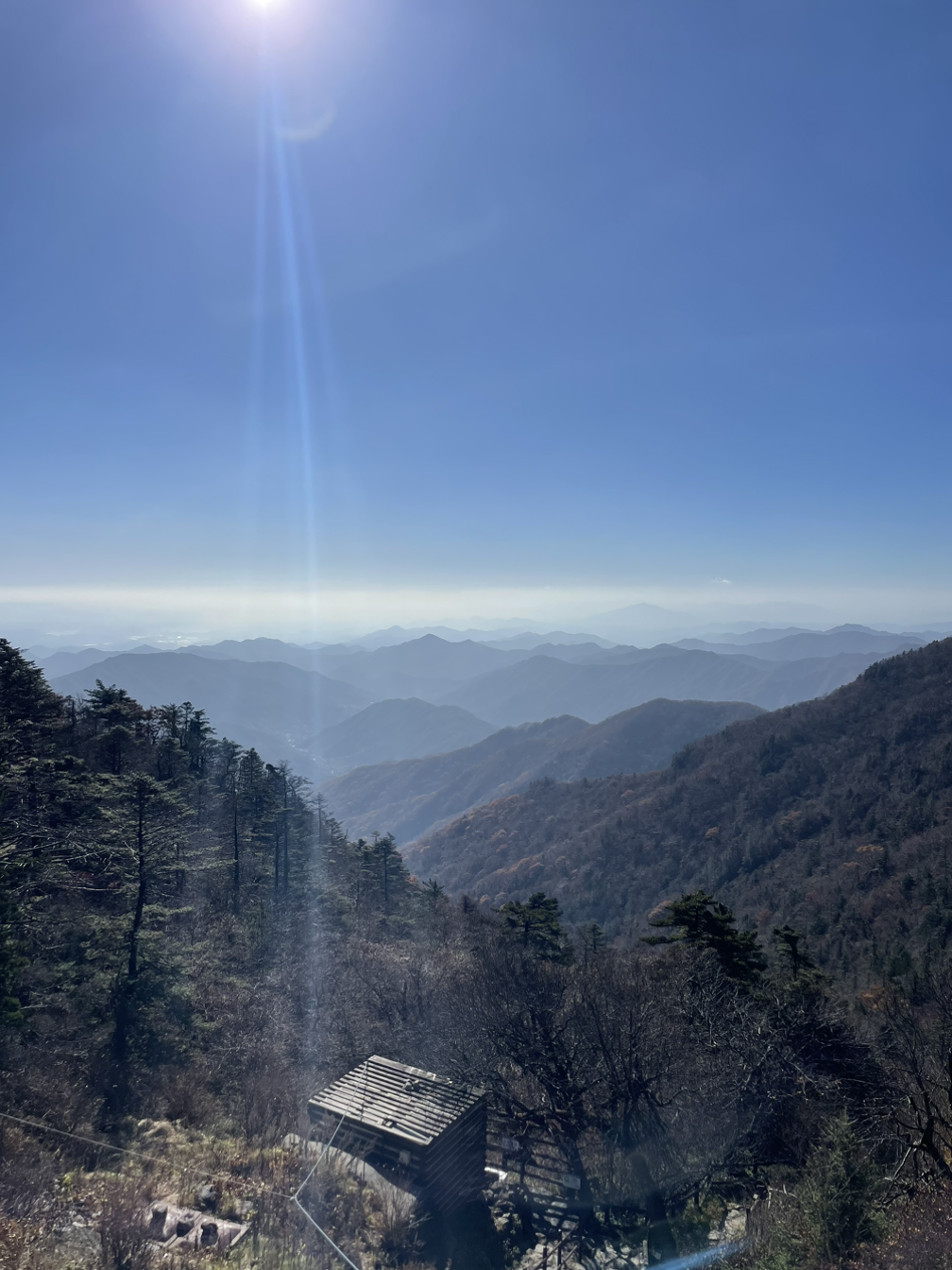 좀 뒤처지는 친구를 기다리는 시간 동안 운 좋게 산이 긴 잠에서 깨어나는 공연을 감상할 수 있었다.