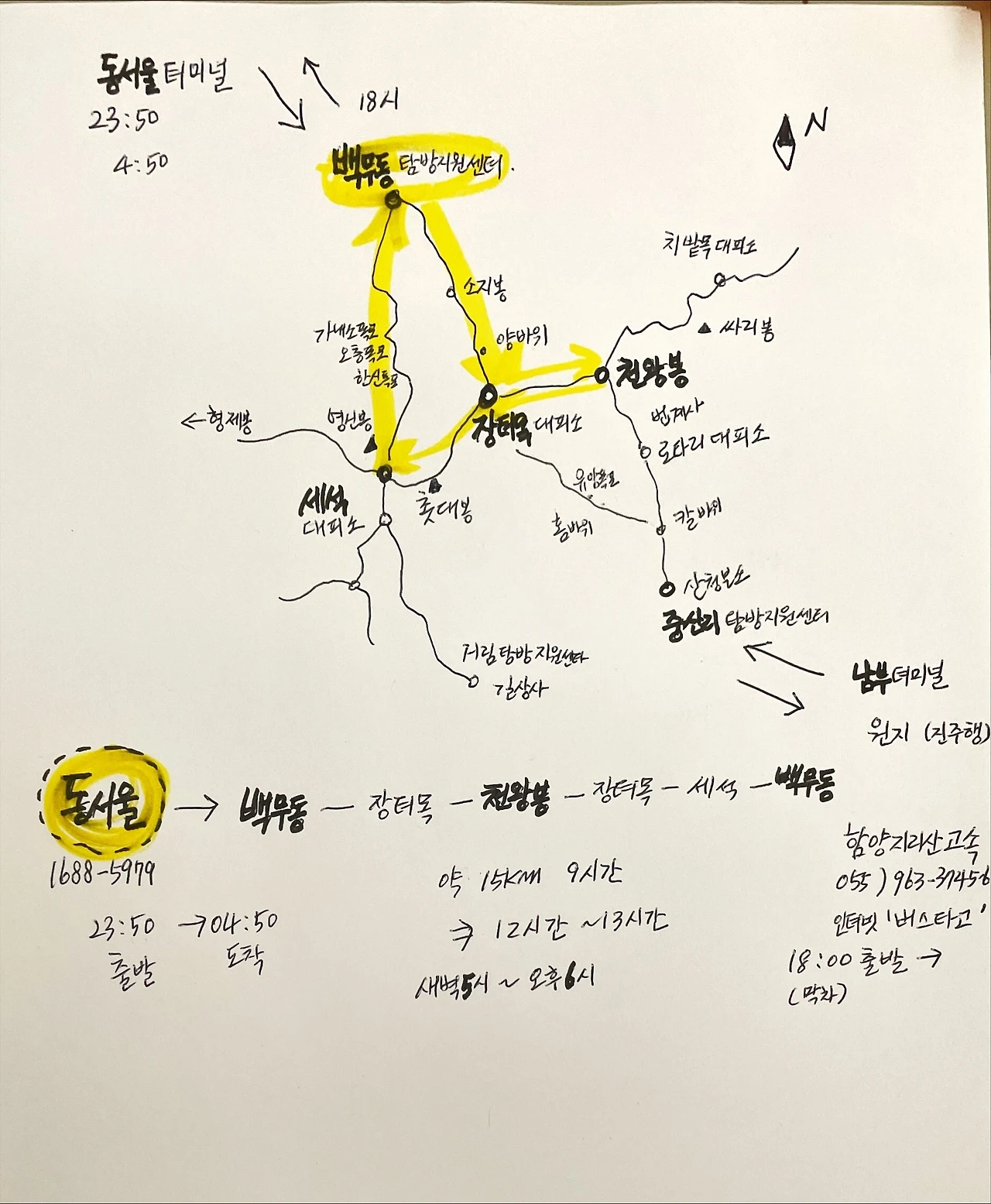 친구는 산에서는 자신이 알아서 할 테니, 산행코스와 오가는 차편예약은 내게 맡겼다. 가볍게(?) 당일코스로 가는 일정을 잡기로 했다. 이리저리 인터넷을 뒤지다 보니 당일로 천왕봉에 오르는 코스는 중산리와 백무동을 통해 가는 길로 압축되었다. 교통편과 우리의 체력을 고려해 보면 백무동으로 들어가 백무동으로 나오는 길이 그나마 만만하게 느껴졌다. 왕복 14.7km 보통 7-8시간 걸린다고 하는데 우리는 12-3시간쯤 걸린다 생각하고 출발하기로 했다.