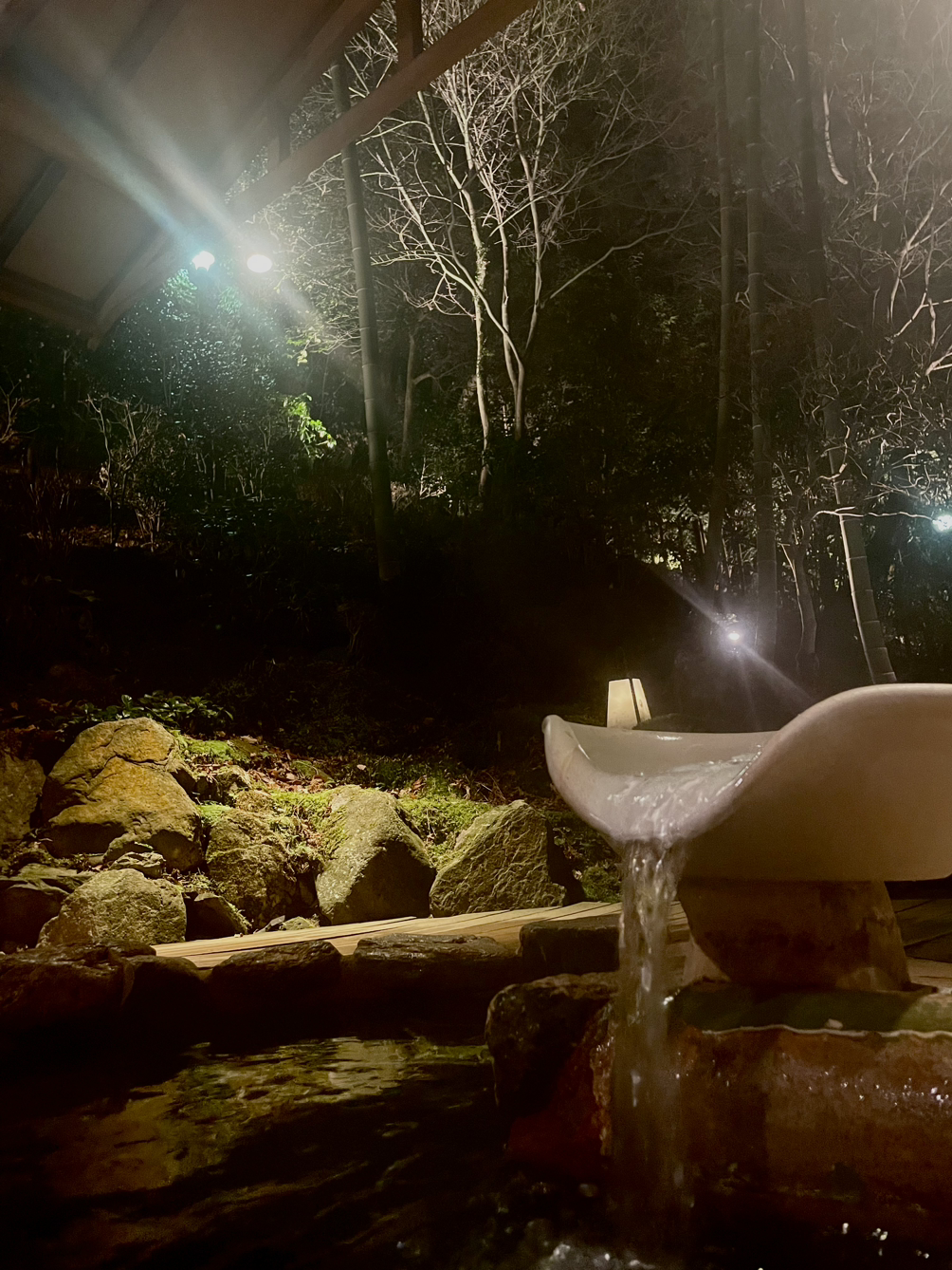 각 온천탕을 프라이빗하게 예약제로 운영하는데, 4개의 야외온천탕과 2개의 실내온천탕이 주변경관과 잘 어울려져 단출하게 꾸며져 있다. 맑고 차가운 밤하늘아래 조용히 흐르는 물소리와 더불어 평화로이 온천을 즐기는 것도 어느새 익숙해져 버렸다.
