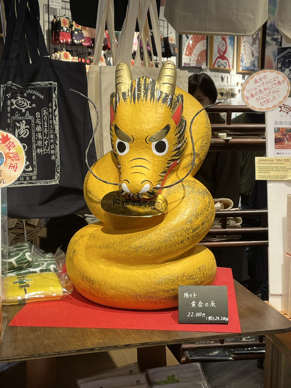 아리마온센 마을 자그마한 상점 안 한가운데를 차지한 황금여의주를 문 황룡,