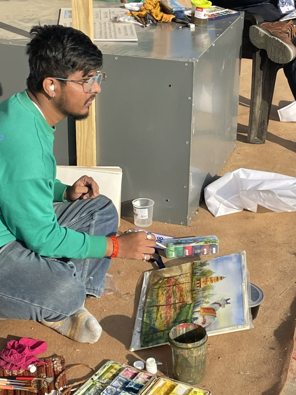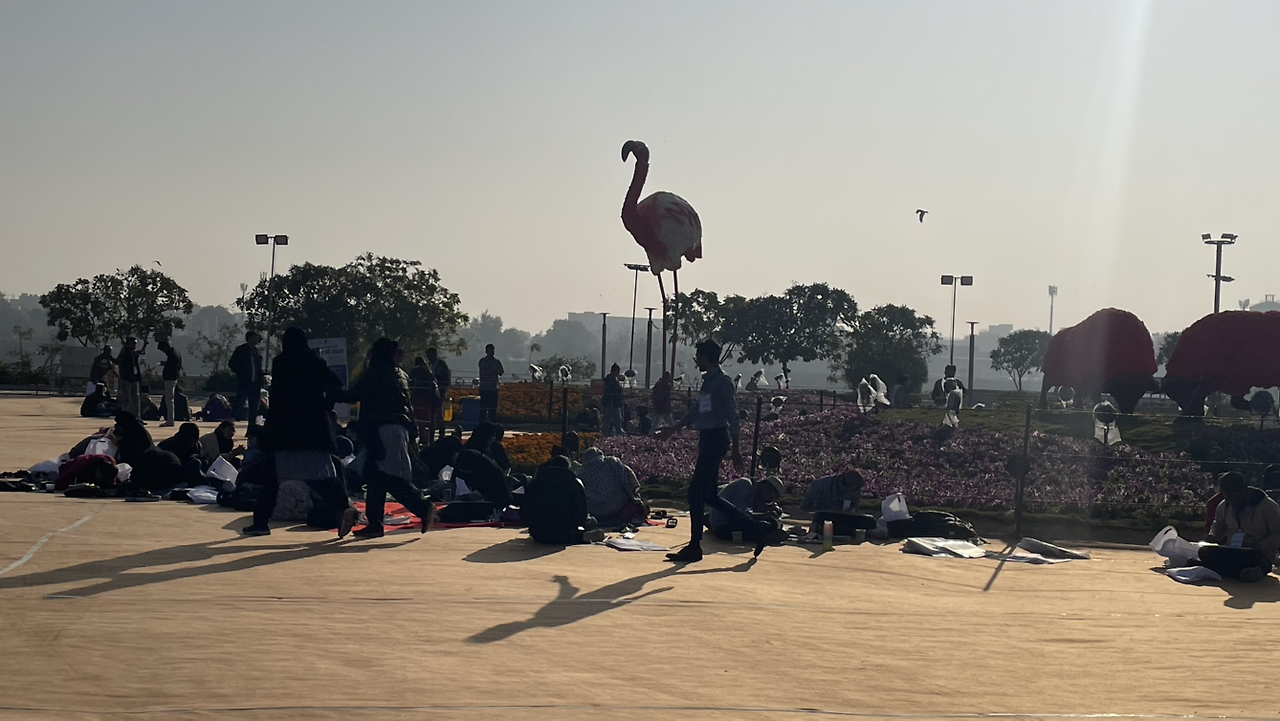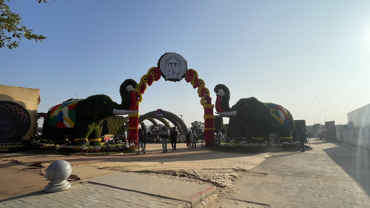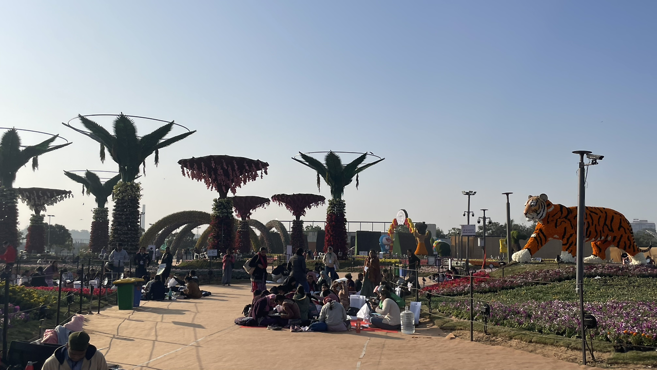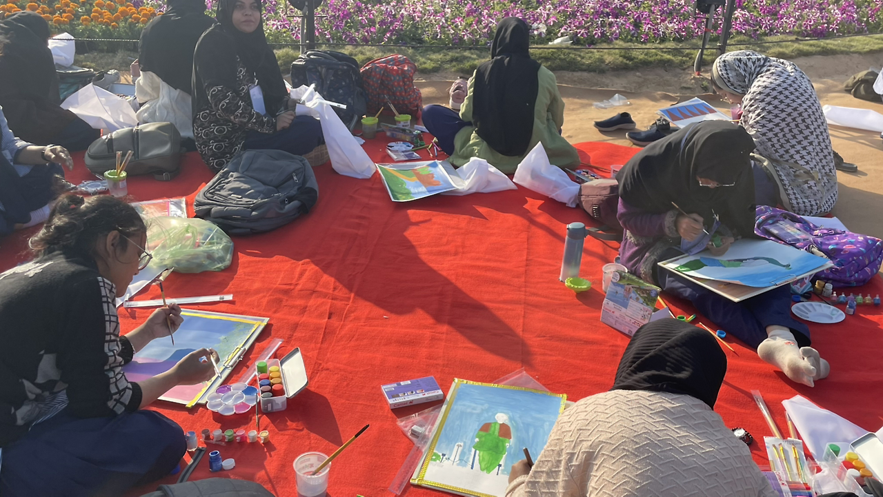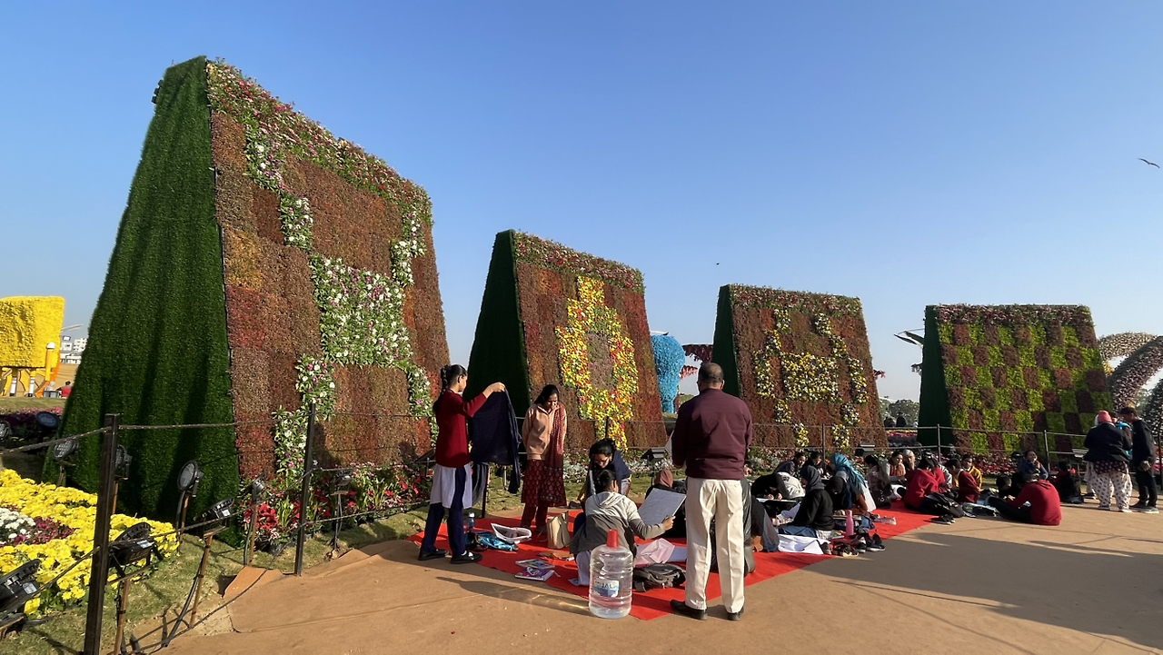 인당 550루피 입장료를 내고 들어가는 2025 아마다바드 세계 꽃박람회를 찾았다. 관람인원을 제한하려는 의도인지 시간별 입장권을 예매해야 한다. 아침 8시 첫 개장시간인데 방문한 9시에 벌써 옹기종기 사람들이 모여 사생대회가 한창이다. 꽃조형물보다 이를 진지하게 그리고 있는 사람들의 모습이 훨씬 인상적이다. 평화롭고 온화한 분위기에서 말 그대로 남녀노소 구분 없이 좋아하는 꽃조형물 근처에 자리 잡고 수채화로 그림을 그리고 있다. 보통 솜씨들이 아니다. 고대유적지를 미리 보지 않았다면 그들의 실력을 쉽게 인정하지 못했을 것이다.