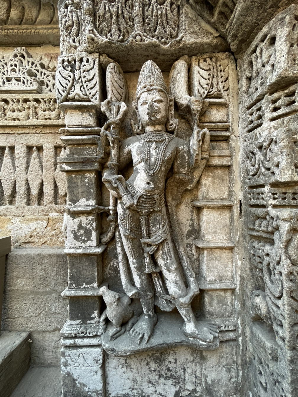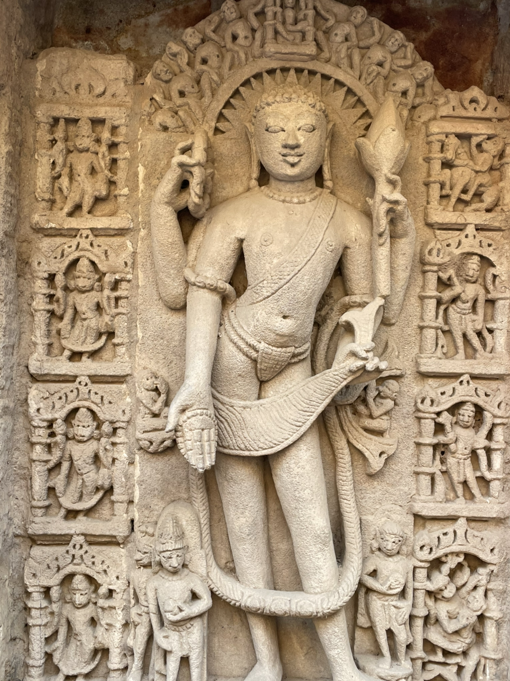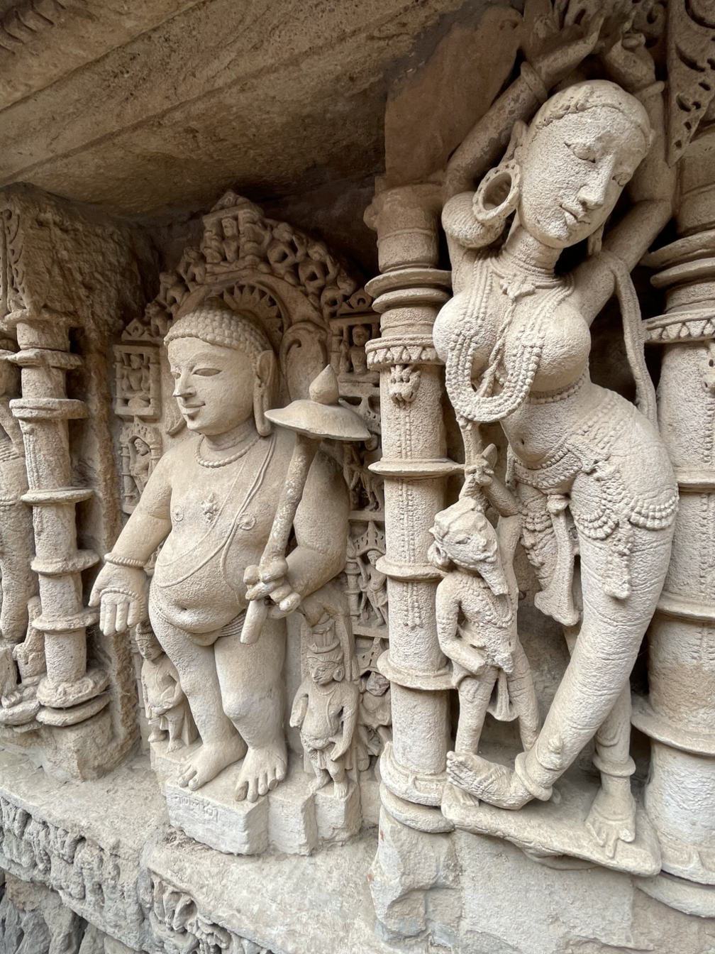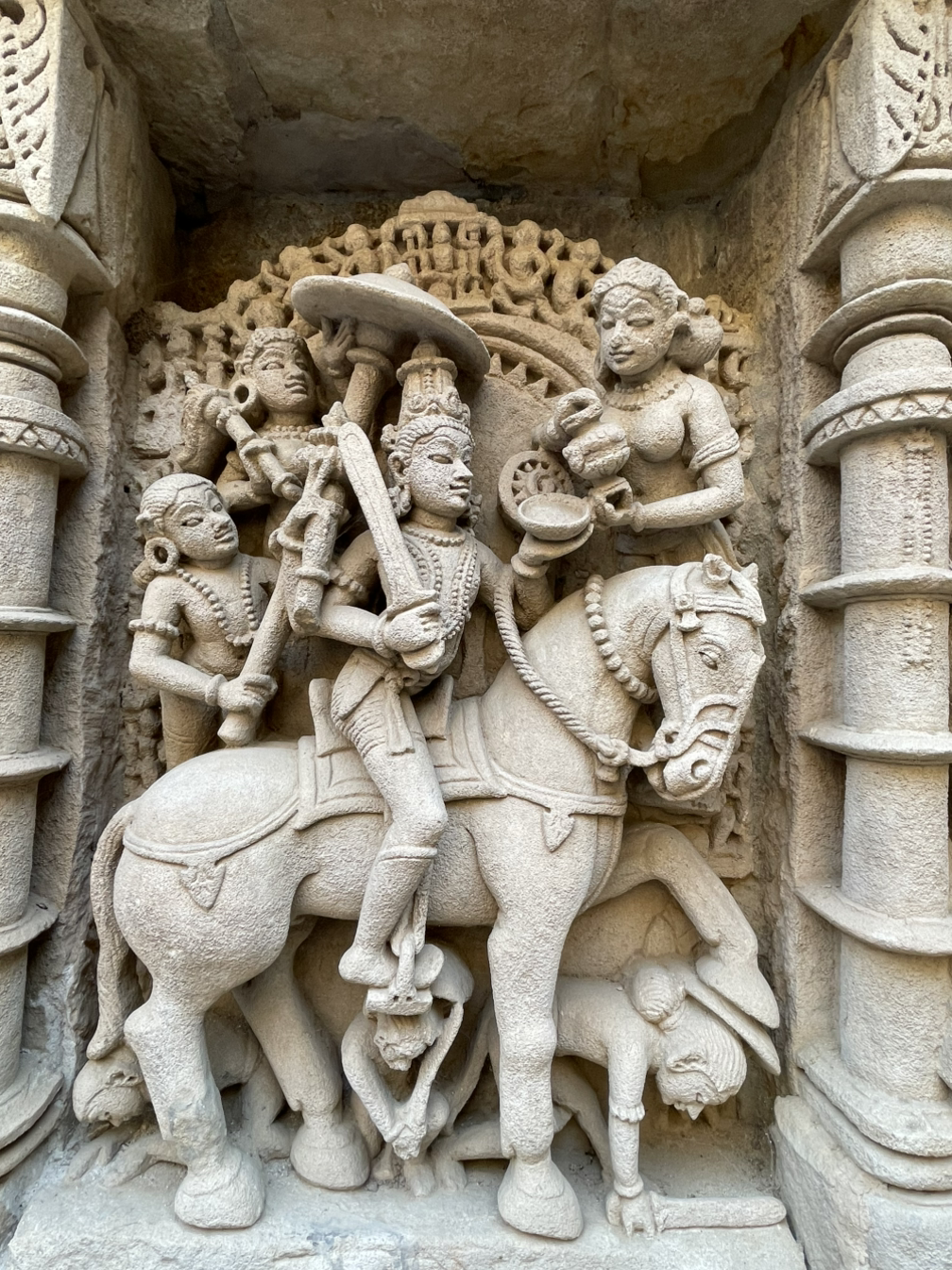 드디어 도착한 곳은 파탄에 있는 인도 100루피 지폐 뒷면에 인쇄된 Rani ki vav 왕비의 계단식 우물이다. 인당 500루피 입장료를 내고, 입구에서 영어가이드에게 700루피를 지불하기로 하고 함께 입장하였다. 강한 인도식 영어발음에 채 20% 정도나 알아 들었을까? 반복되는 힌두 이름에 어지러울 지경이었지만 끝까지 들어보기로 했다.