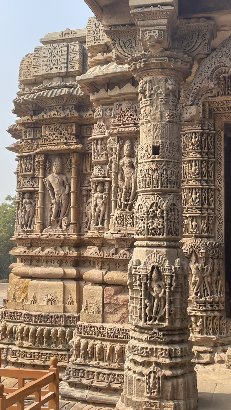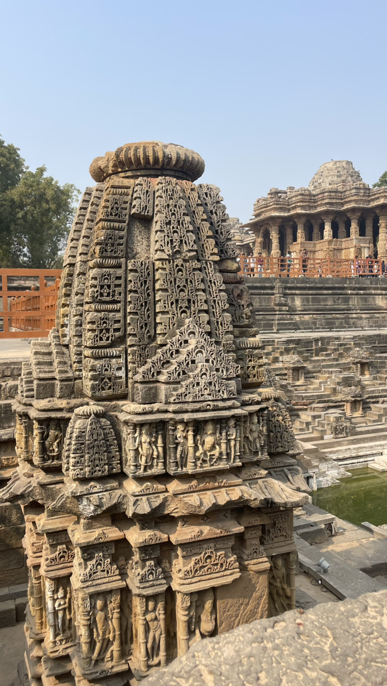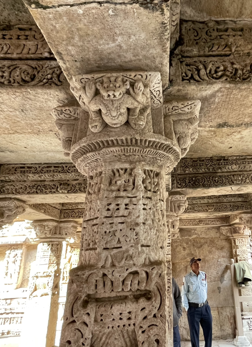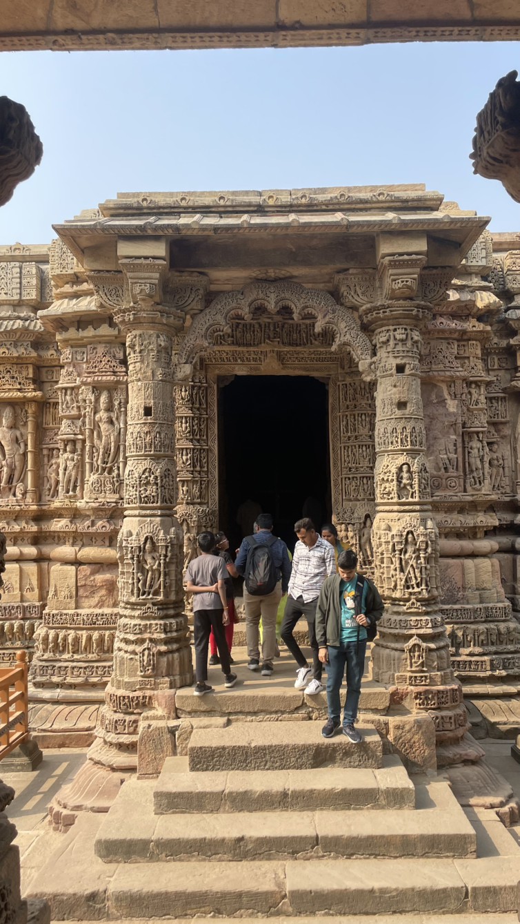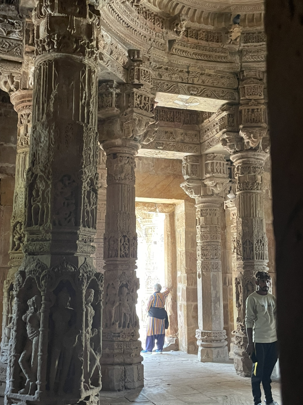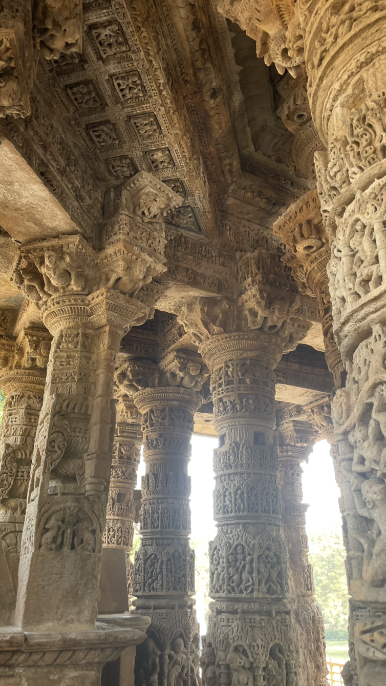 첫 번째 사원에서 계단으로 자연스럽게 연결되는 두 번째 사원은 더욱 놀라웠다. 첫 번째 사원에 비해 다소 닫힌 구조로 되어 있는데, 외부에서 들어오는 절제된 빛을 따라 한걸음 한걸음 걷다 보면 나도 모르는 사이 새롭게 펼쳐지는 공간을 만나게 되는 것이 마치 신비스러운 고대로 여행하는 탐험가가 되는 기분이다. 기둥에서 천정까지 이어지는 정교한 조각들, 제한된 창을 통해 미로같이 연결된 좁은 벽으로 부딪치는 입체적인 간접빛 등은 이곳에서도 사원의 규모를 마술같이 확장시키고 있었다. 색다른 우주를 경험하는 느낌이다. 그 순간 스페인 사그라다 파밀리아가 머릿속에 떠오르는 것도 이상할 것이 없었다. 가우디의 인도여행 중 틀림없이 이곳을 방문했을 것이라는 상상을 해 본다. 짧은 순간 얕은 안목의 낯선 이방인조차도 이렇게 새로운 세계를 경험시켜 주는 천재설계자와 장인들의 손길에 고개가 자연스레 숙여지며 마음 깊은 경의를 표하게 된다. 나중에 Heritage walk에서 알게 되었지만 이곳은 인도에 남아있는 두 개뿐인 태양사원 중 하나라고 한다. 경주 토함산 석굴암의 구조가 동해에서 떠오르는 태양의 빛을 부처의 이마에 부딪쳐 빛나도록 설계한 것처럼 이곳 사원도 그렇게 설계되었다고 한다. 21세기 현재에도 천문과 지리, 건축기술의 정교함에 감탄할 정도인데 과거 신라가 활발한 해상교역을 통해 받아들였던 문화적 여파는 어느 정도였을까 짐작하기 힘들 뿐이다.