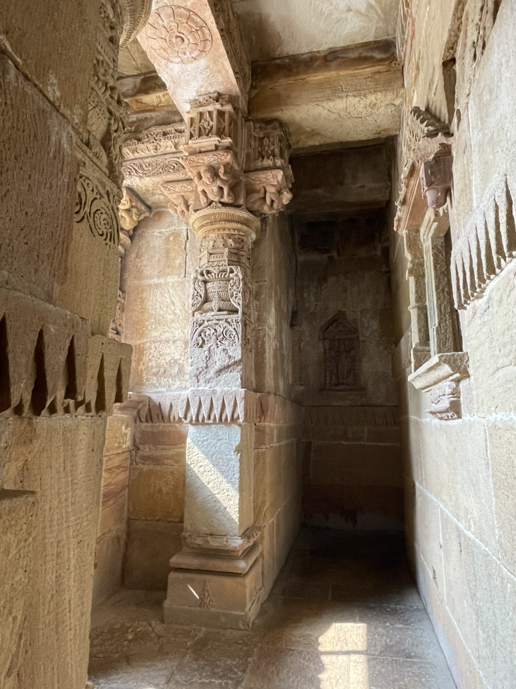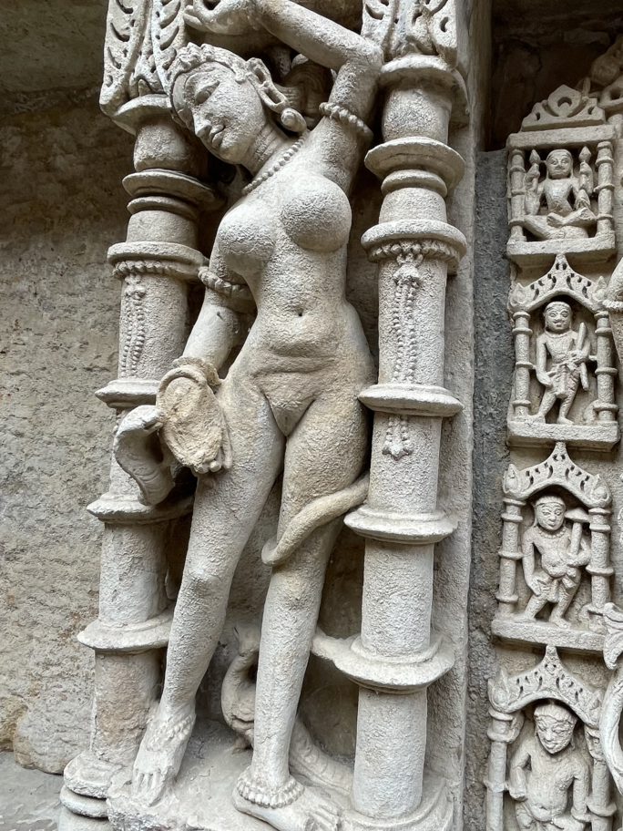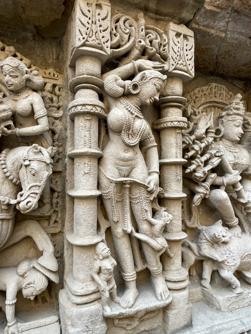 얼핏 외부에서 보기엔 아담한 사원이 내부로 들어갔을 때, 그 느낌이 사뭇 달랐다. 가까이 본 조각상들은 그 정교함에서 오는 깊이가 복잡하고 과한듯하면서도 일정 패턴 안에 표현된 절제된 아름다움이 있어 묘한 감동을 불러일으킨다. 외부로 사방이 완전히 개방된 환경에서 겹겹이 세워진 기둥들 사이로 비치는 빛과 그림자, 초록이 함께 연출하는 사원 내 공간은 실규모에 비해 훨씬 크고 다양한 느낌을 만들어낸다. 이렇게 열린 공간에서 빛과 함께 내외부의 조화로운 공간을 연출한 건축가는 가히 천재임에 틀림없다. 사실 잠시 머물다 왕비의 우물로 바로 넘어가려 했는데 도저히 쉽게 발걸음이 떨어지지 않을 만큼 보고 느낄 것이 많았다.
