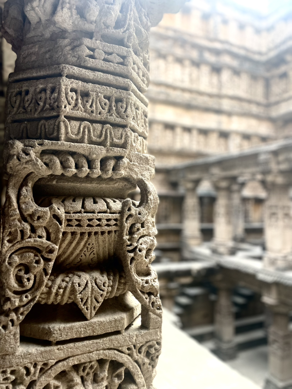 돌계단끼리 서로 연결시킨 나무 쐐기와 돌들을 서로 맞물려 쌓아 올린 얽힌 구조는 강도 6.9, 2만여 명의 사상자를 냈던 2001년 구자라트 대지진에도 견뎌낼 수 있었다고 한다. 무척 인상적이다.