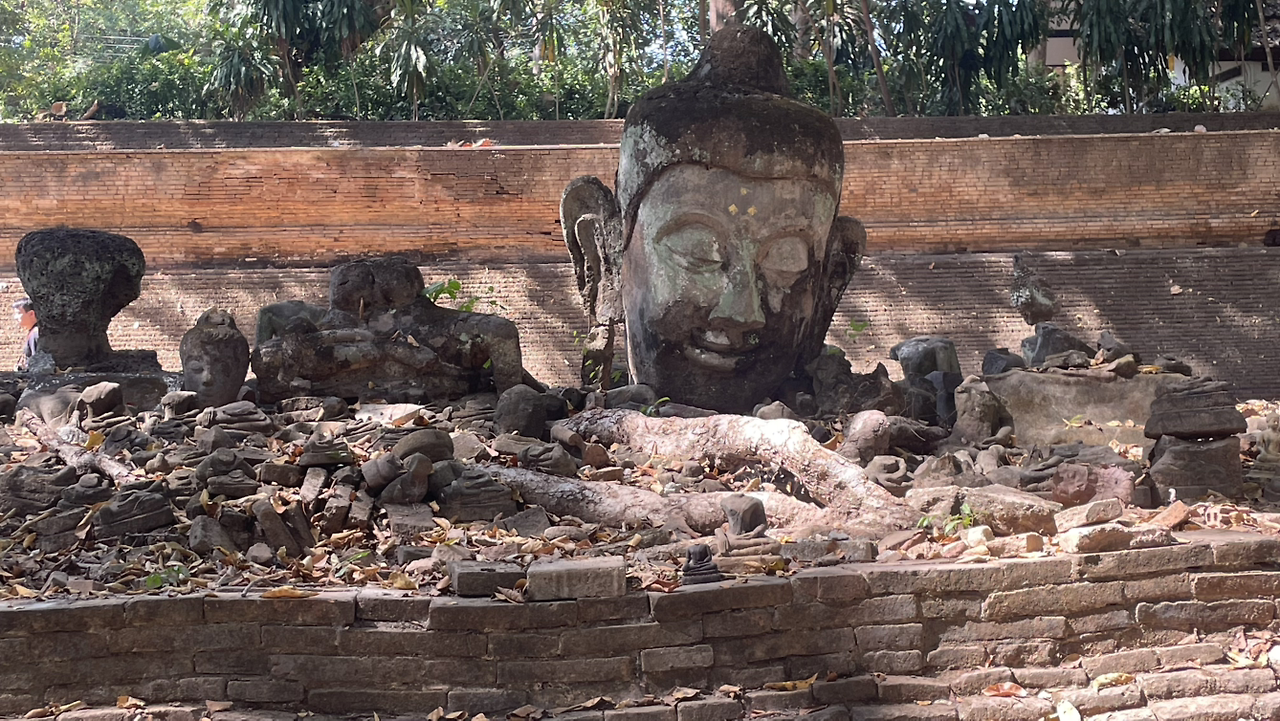 조각난 불상, 덩그러니 머리만 있는 불상도 웃고 있다.