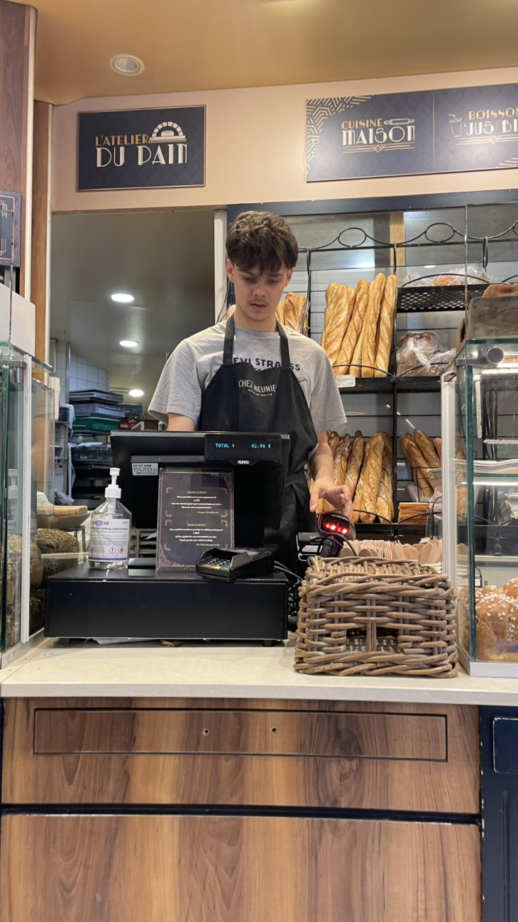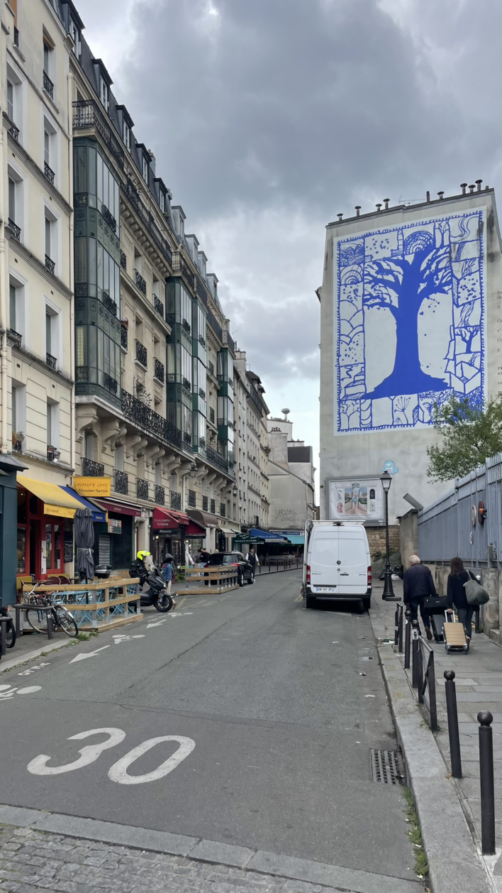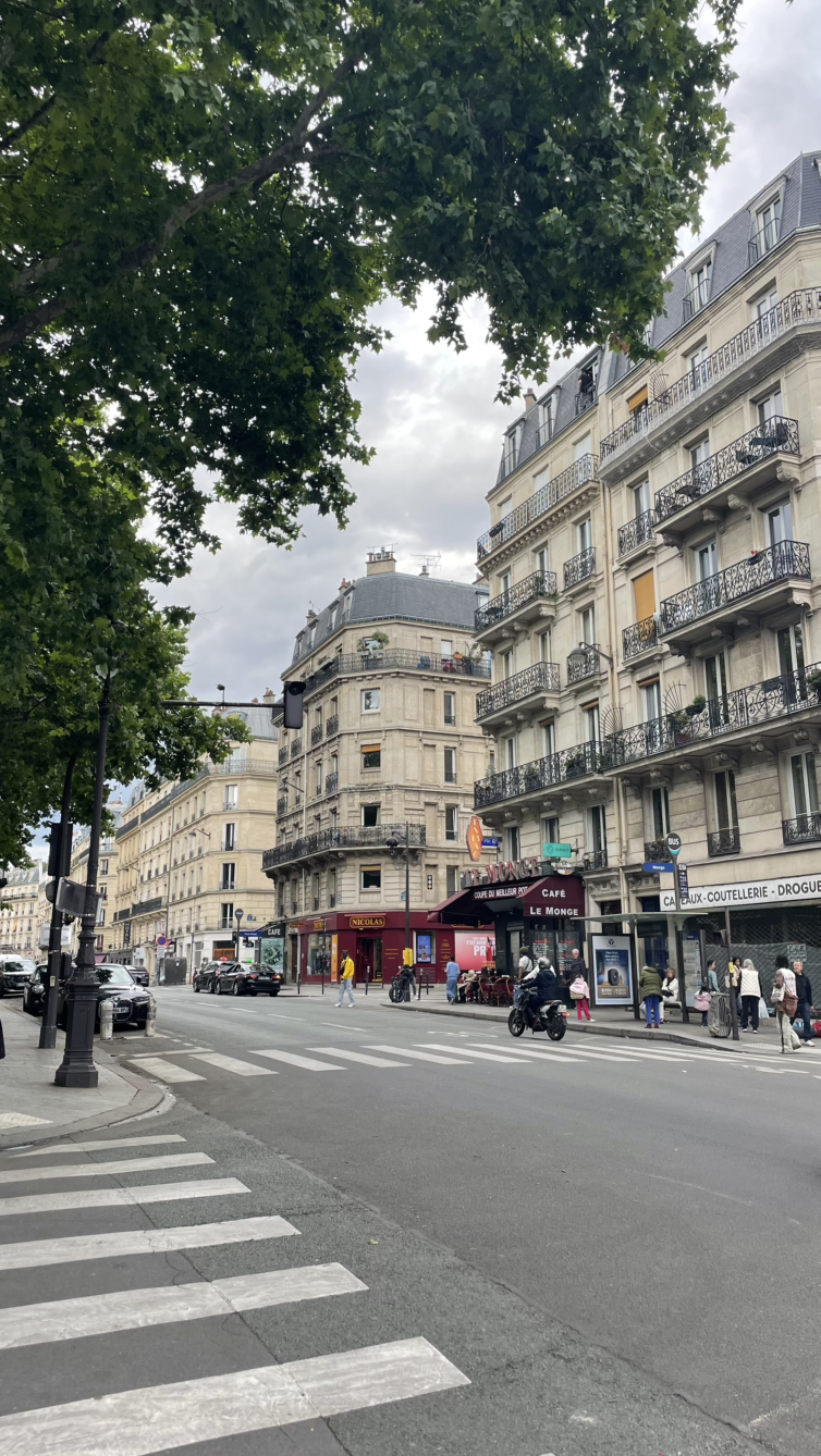 파리의 아침은 갓 구워낸 바게트, 크로와상으로 출발하는 게 국룰이다. 살짝 비 오는 터라 숙소 근처 빵집 실내테이블에서 파리일상을 시작해 본다.