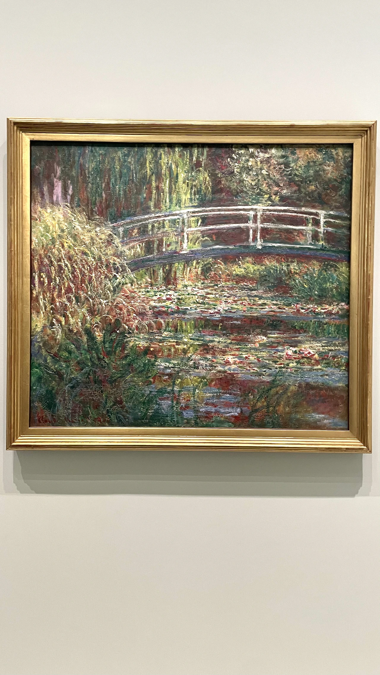 오랑주리미술관은 프랑스남부여행을 마치고 귀국하기 전 며칠 남은 파리일정가운데 루이뷔통재단미술관을 갈지 마지막까지 선택에 고민했던 곳이다. 주어진 시간상 루이뷔통미술관은 파리도심에서 조금 떨어진 외곽에 있기도 해서 다음 기회로 미루고 오랑주리로 향했다. 아침 일찍 오픈런하며 1시간 반 긴 기다림에 지쳐갔지만 막상 관람을 하다 보니 피로가 싹 가실 만큼 보상이 컸다. 2개의 전시관 벽면을 가득 채운 8점의 모네의 '수련'은 지베르니정원을 미술관내 깔끔하고 세련된 공간으로 옮겨와 모네자신이 화가이자 도슨트가 되어 펼쳐 보여주는 듯한 느낌을 주었다. 마치 가상현실 속 같은 묘한 느낌이다. 압도적인 크기의 작품이지만 압도되지 않는 편안함이 관람객들을 자연스럽게 자리에 앉혀 머물러 감상하도록 만든다. 나중에 알게 된 것이었지만 모네가 의도했던 것도 관람객이 연못 한가운데 있는듯한 몰입감을 느끼도록 전시관을 설계한 것이라고 한다. 일단 그의 의도는 성공한 셈이다. 더욱이 오렌지 온실을 개조한 미술관이라 자연광을 살린 구조나 분위기가 좀 더 자연스럽게 지베르니 정원에 와있는 느낌을 주었다. 상대적으로 안도다다오가 설계한 가까운 일본의 지중미술관이 떠오른다. 배를 타고 들어간 나오시마섬 언덕을 따라 올라간 미술관 앞에는 지베르니를 본뜬 작은 정원이 있었고, 5점의 모네의 '수련'이 전시된 전시관에 들어갈 때는 신발을 벗고 들어갔다. 마치 세속을 벗어난 거룩한 성전을 방문하는 느낌에 숨소리조차 조심스러웠던 기억이다. 같은 작품이라도 어디서 어떻게 전시하느냐에 따라 그 느낌이 사뭇 다르다. 예술을 대하는 문화적 차이가 아닐까 싶다.