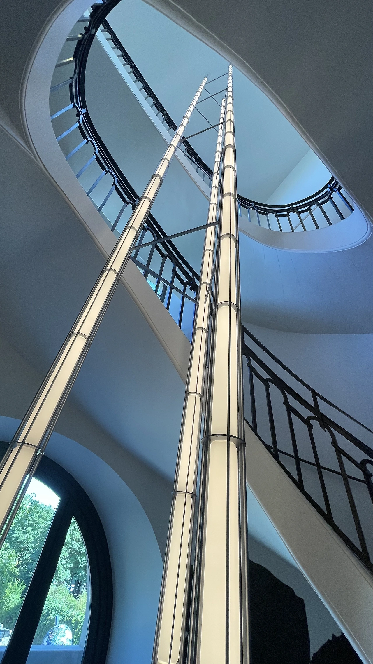 이미 수차례의 파리여행에 익숙한 아내가 가장 먼저 보여주고 싶고 또 함께 다시 가보고 싶어 했던 공간은 단연 피노컬렉션이었다. 고전과 현대의 고급스럽고 세련된 멋을 조화롭게 공간으로 재탄생시킨 것이 어떻게 말로 다 표현하기 어렵다며 가봐야 할 곳 1순위로 꼽았다. 피노컬렉션은 구찌그룹의 회장으로 알려진 프랑수아 피노 회장이 루이뷔통재단미술관을 보고 경쟁적으로 지었다는 뒷이야기로 잘 알려져 있기도 하다. 현재의 피노컬렉션은 16세기 기원을 둔 건축물을 19세기에 지금의 원형돔 형태의 천장을 가진 건물로 개조하여 증권거래소로 사용하던 곳이었는데, 피노 회장이 독특한 형태의 원형돔 천장 매력에 빠져 50년 장기임대계약을 맺고 자신이 평생에 걸쳐 수집한 만여 점의 작품을 전시할 수 있는 미술관으로 탈바꿈시켰다고 한다. 2017년부터 3년간 우리에게도 잘 알려진 세계적인 일본 건축가 안도다다오와 프랑스 디자이너 부홀렉형제의 합작품으로 재탄생시킨 이 역작은 2014년에 개관한 프랑크 게리(Frank Gehry)가 설계한 루이뷔통재단미술관(Foundation Louis Vuitton)과 더불어 비견되며 프랑스 양대 라이벌 재벌 간의 묘한 신경전과 개성을 엿보는 즐거움을 전해준다. 원형돔 천장을 그대로 재현한 중앙의 원형홀은 정말 탁월한 아이디어다. 그렇게 상상하기 쉽지 않은 공간이 펼쳐지고 곳곳에 설치된 세련된 조명과 오브제등은 절제돼 있으면서도 완성된 긴장미가 흐른다.