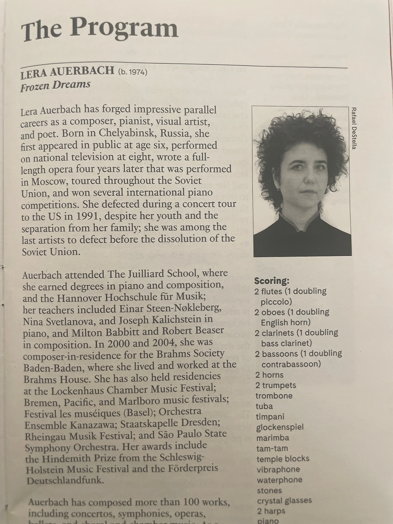 아빠가 클래식을 좋아한다고 딸은 조성진의 카네기홀 공연을 예약했다. 워낙 청음이 발달한 딸이라 이번 공연을 은근 기대하고 있다. 피츠버그심포니오케스트라(Pittsburgh Symphony Orchestra)의 만프레드 호넥(Manfred Honeck) 지휘자와 조성진피아노 협연이다. 좌석은 거의 매진임박, 가까스로 앞자리를 구했다. 러시아작곡가 레라 오어바흐의 얼어붙은 꿈(Lera Auerbach, Frozen Dream(2025)), 라흐마니노프의 파가니니주제의 랩소디(Rachmaninoff, Rhapsody on a Theme of Paganini, Op. 43(1934)), 그리고 쇼스타코비치의 5번 교향곡(Shostakovich, Symphony No.5 in D Minor, Op. 47(1937)) 3곡이 120분간에 걸쳐 공연된다. 조성진이 연주한 라흐마니노프의 곡은 이미 오디오를 통해 수차례 들어봤지만 오어바흐의 곡과 쇼스타코비치의 곡은 공부를 해야 했다.