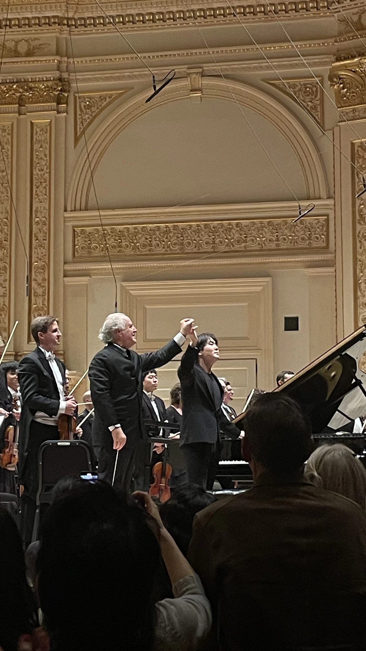 이미 클래식에 깊이 있는 해설이 많은 가운데 공연에 대해 글을 남긴다는 것이 섣부른 행동이 아닌가 조심스럽지만 공연에 최적화된 카네기홀 아이작스턴오디토리엄(Issac Stern Auditorium)에서의 경험은 신선했다. 직사각형구조에 높은 천장이 주는 몰입감과 무대 앞자리에서 소리의 반향 없이 소리를 그 자체로 직접적으로 들을 수 있는 것이 연주감상에 생생함을 더했다. 첫 연주곡 ‘얼어붙은 꿈’은 사전에 실내악곡으로 들었을 때와 교향곡으로 변주된 곡과의 차이는 너무 커서 사전 예습을 무색하게 하였다. 겨울의 차가운 공기와 살얼음을 밟는 듯한 음향이 악기로 구현되며 깊은 감성으로 이끌어가는 클래식의 현대적 해석이 놀라울 뿐이다. 시간과 공간이 무한 확장되는 경험이다. 연주가 끝나고 무대인사에 나오는 레라 오어바흐작곡가도 무대를 돋보이게 하는데 한몫을 한다. 이어진 조성진의 피아노연주는 역시 말 그대로 피아노연주의 정석을 보는 듯 절제되고 정교한 연주에 연신 감탄을 금할 수 없다. 숨죽이며 지켜본 20여 분간의 악보 없이 진행되는 하얗고 기다란 손이 건반 위에 춤추는 모습은 오랜 시간 갈고닦아 예술로 승화된 훈련결과를 보고 있는 것이다. 자그마한 동양인이 더 이상 작게 보이지 않는 멋진 무대이다. 열렬한 앙코르박수에 짧은 곡으로 화답하는 친절함에 잠시 흐뭇해진다. 20분간의 짧은 휴식 후 펼쳐진 쇼스타코비치의 교향곡 5번은 만프레드 호넥지휘자에게 그래미상을 쥐어진 곡이기도 하다. 워낙 실력 있는 연주자들의 공연이기도 했지만 연주자들의 표정을 보면서 잡음 하나 없는 원음의 생생한 연주를 듣는 것은 공연에 좀 더 가깝게 몰입할 수 있도록 도와준다. 무엇보다도 4-50분간의 연주시간 내내 열정적으로 연주자들과 함께 하나 되어 지휘하는 노장의 모습은 그 자체가 하나의 행위예술로 아름답다. 숨결보다도 더 섬세하게 움직이는 손끝의 움직임, 웅크렸던 몸에서 폭발하듯 튕겨 나와 리듬을 타는 동작, 순식간에 회오리바람결 같이 휘젓는 지휘봉을 잡은 손놀림 하나하나가 모두 연주자들과 깊게 연결된 동작으로 빠져나올 수 없게 만드는 예술이다. 구소련 스탈린의 대숙청시기에 작곡(1937)된 이 곡은 연주시간이 지날수록 집요하게 파고드는 선율과 반복적 리듬으로 숨을 멎게 하면서 내면에 켜켜이 쌓여있는 집단무의식의 심연으로 안내한다. 러시아의 감성이란 이런 것인가. 피카소의 게르니카(Guernica,1937)가 떠오르고 치앙마이 현대미술관(MAIIAM) 벽면을 장식한 우밧삿(Ubatsat) 작가의 미얀마게르니카버전 Burmica(2022) 작품이 떠오른다. 폭력과 전체주의, 그 가운데 인간이 겪는 공포와 좌절, 희망등 숨겨진 복잡한 느낌을 인류 보편적 감성으로 끌어낼 수 있는 힘은 예술가의 몫이다. 그림을 복사본으로 보는 것과 원작을 보는 차이 이상으로 같은 시공간에서 연주자와 관객이 하나 되는 것은 상상이상으로 큰 몰입감을 주는 감동적인 경험이다. 그림감상은 관객주도적인 예술 감상이고 음악은 연주자주도적인 예술감상이라는 기존의 나의 견해를 이번 공연감상을 통해 수정해야만 했다. 주어진 연주시간 내내 관객이 주도적으로 소리를 보고 듣는 새로운 경험을 선사한다. 단지 40여 분간 연주된 쇼스타코비치의 교향곡을 조금 멀리서 들었더라면 전체적인 음향을 더 즐길 수 있었을 텐데 하는 배부른 아쉬움이 있었지만 딸은 1초도 놓치지 않고 음을 즐겼다고 하니 이 또한 각자의 감각과 감성의 차이이고 함께 감상하는 풍성함이다.