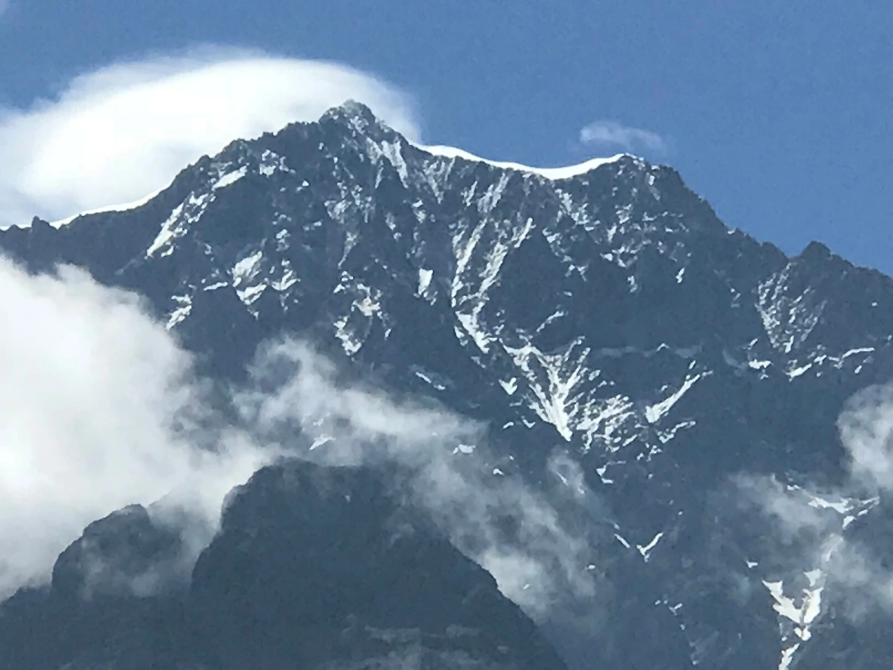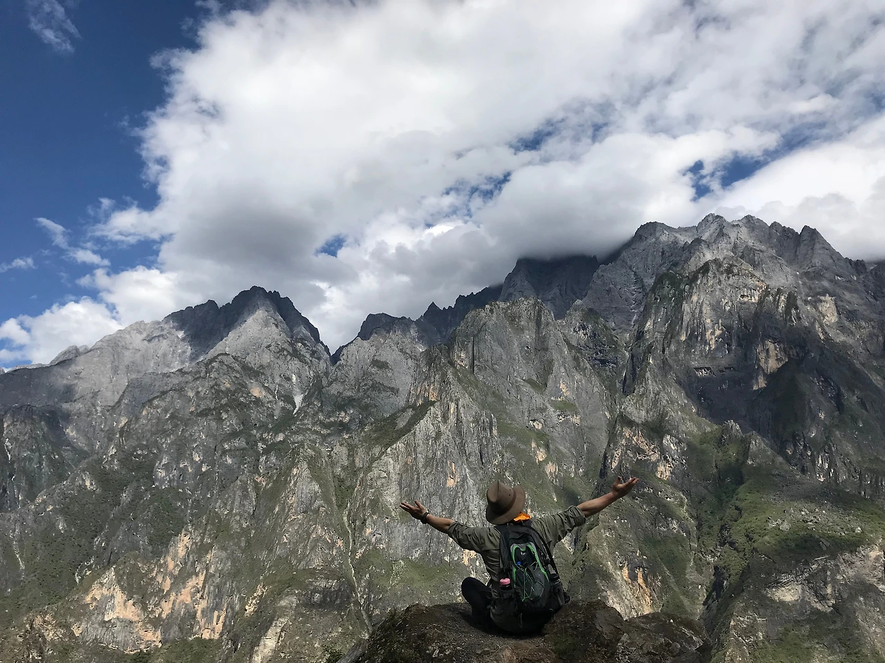 반나절 날씨를 예측하기 어려운 산 날씨라고 가이드가 조심스럽게 날씨정보를 흘렸는데, 맑은 하늘이 펼쳐졌다. 그리고 굽이굽이 봉우리들을 휘감는 구름의 춤사위는 지난밤 별들 못지않다.