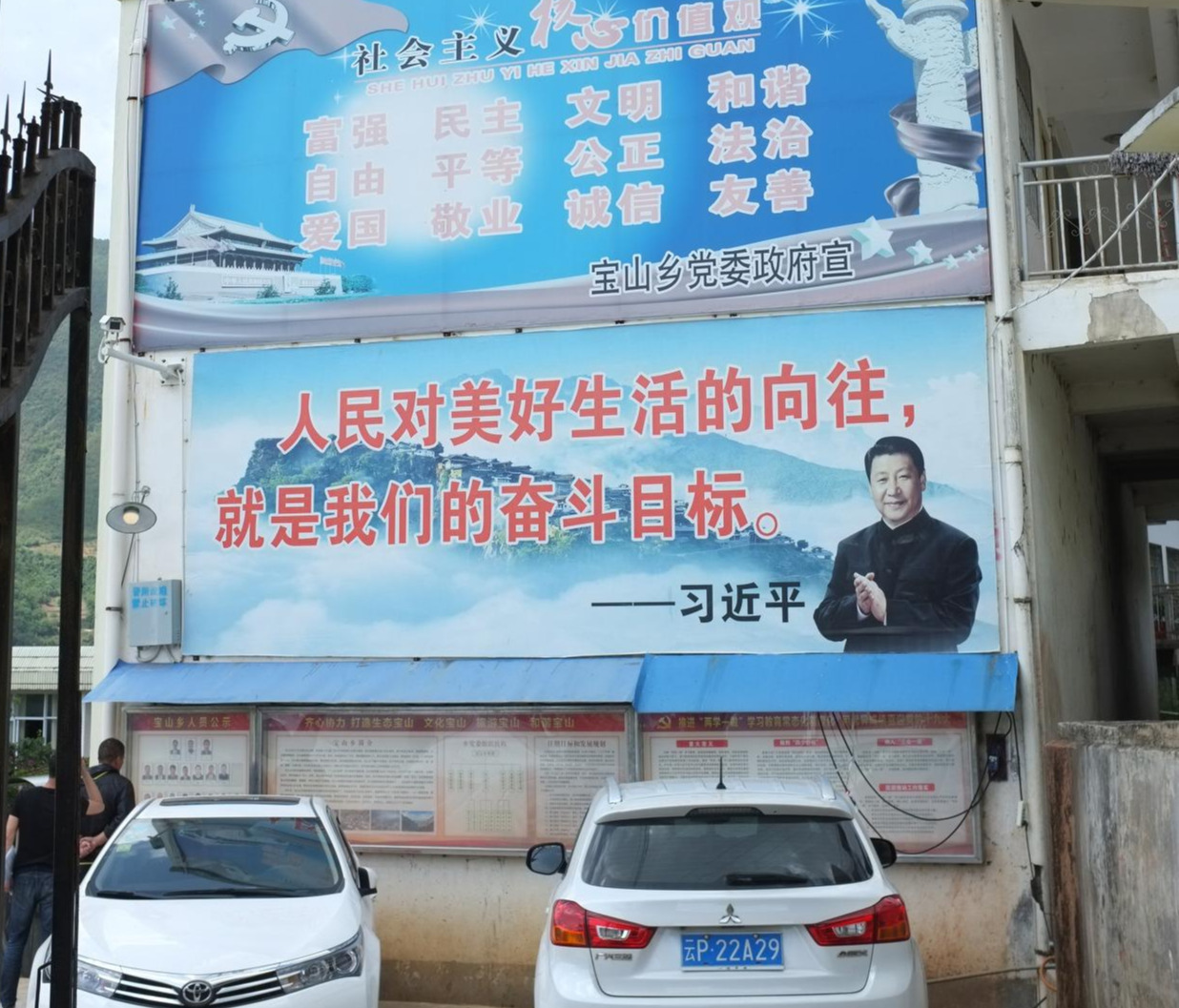 좁디좁은 오지마을 길가에서도 중국 공산당 선전문구가 많이 보인다. 옛날 새마을 운동 문구를 보는듯하다.