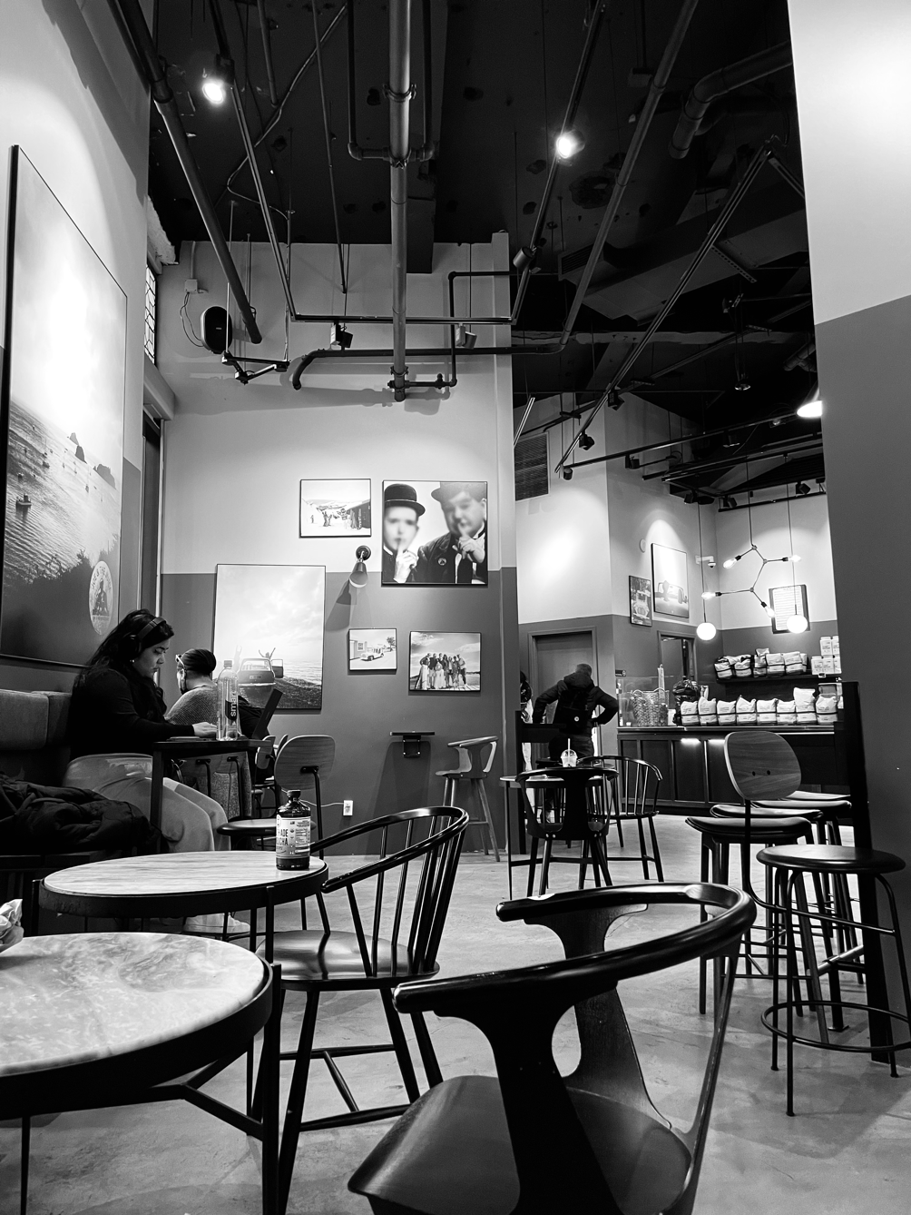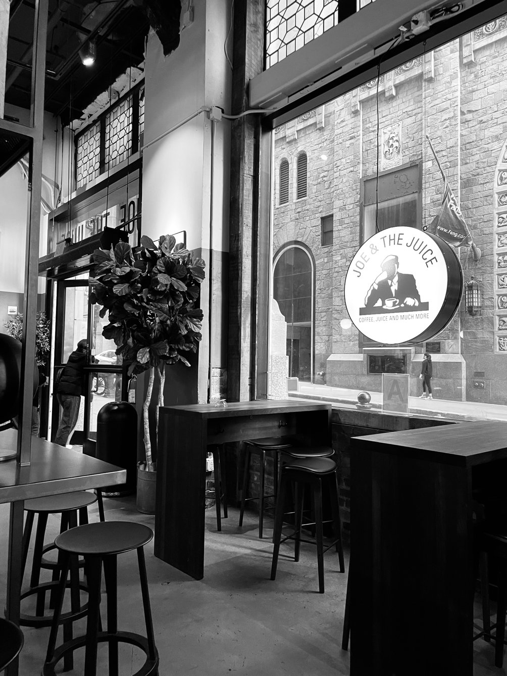 잠이라도 깰 겸, 큰딸이 안내한 곳은 근처 Joe & The Juice 커피숍. 동부에서는 제법 유명한 커피체인점이란다. 높은 천장에 부분적으로 거친 노출마감을 하고 적절히 원목과 검정철재를 사용한 인테리어는 그야말로 대표적인 뉴욕감성이다.