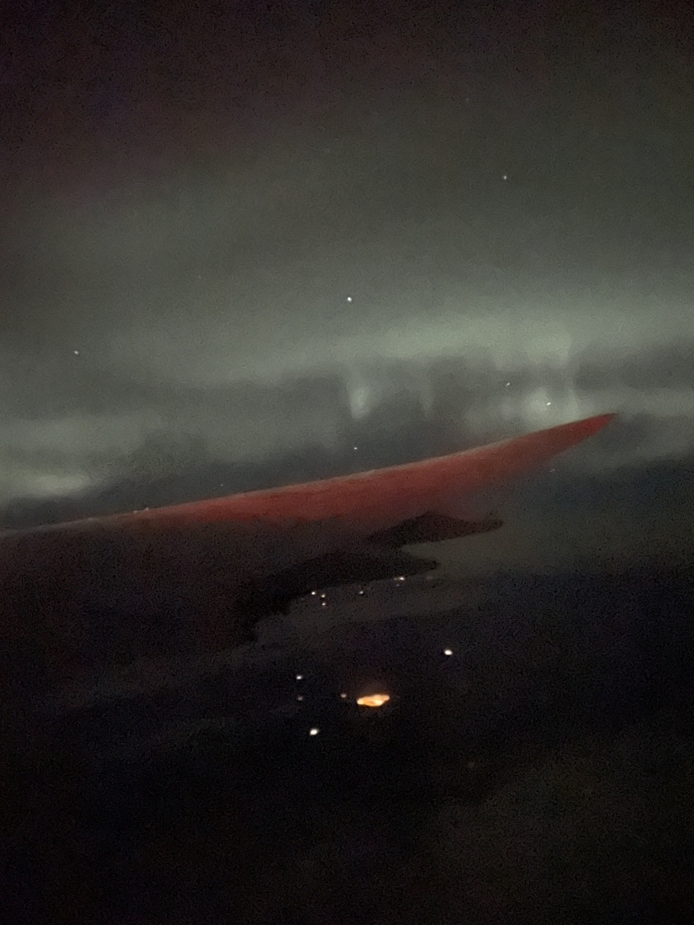 옅은 기압으로 기내의 크고 작은 소음은 빨려 들어가고 먹먹해진 귓가에는 환기장치 돌아가는 소리만 가득하다. 멀리 단조롭게 깜빡이는 날개의 불빛만이 짙은 어둠에서 나의 위치를 확인해주고 있다.