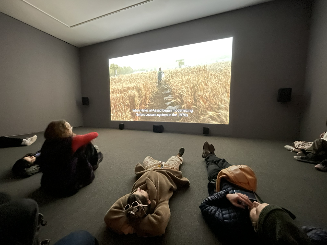 이게 뭐지? 영화 상영관에서는 레바논사람이 나오는 다큐멘터리가 상영 중이다. 대대로 식용으로 채취해 온 야생초가 개정된 생태계보호법과 얽힌 고발성 영화이다.
