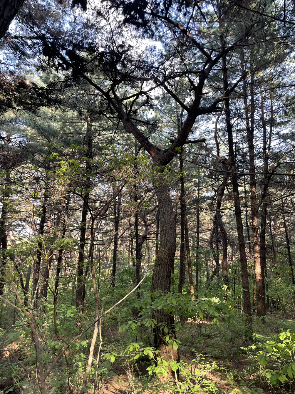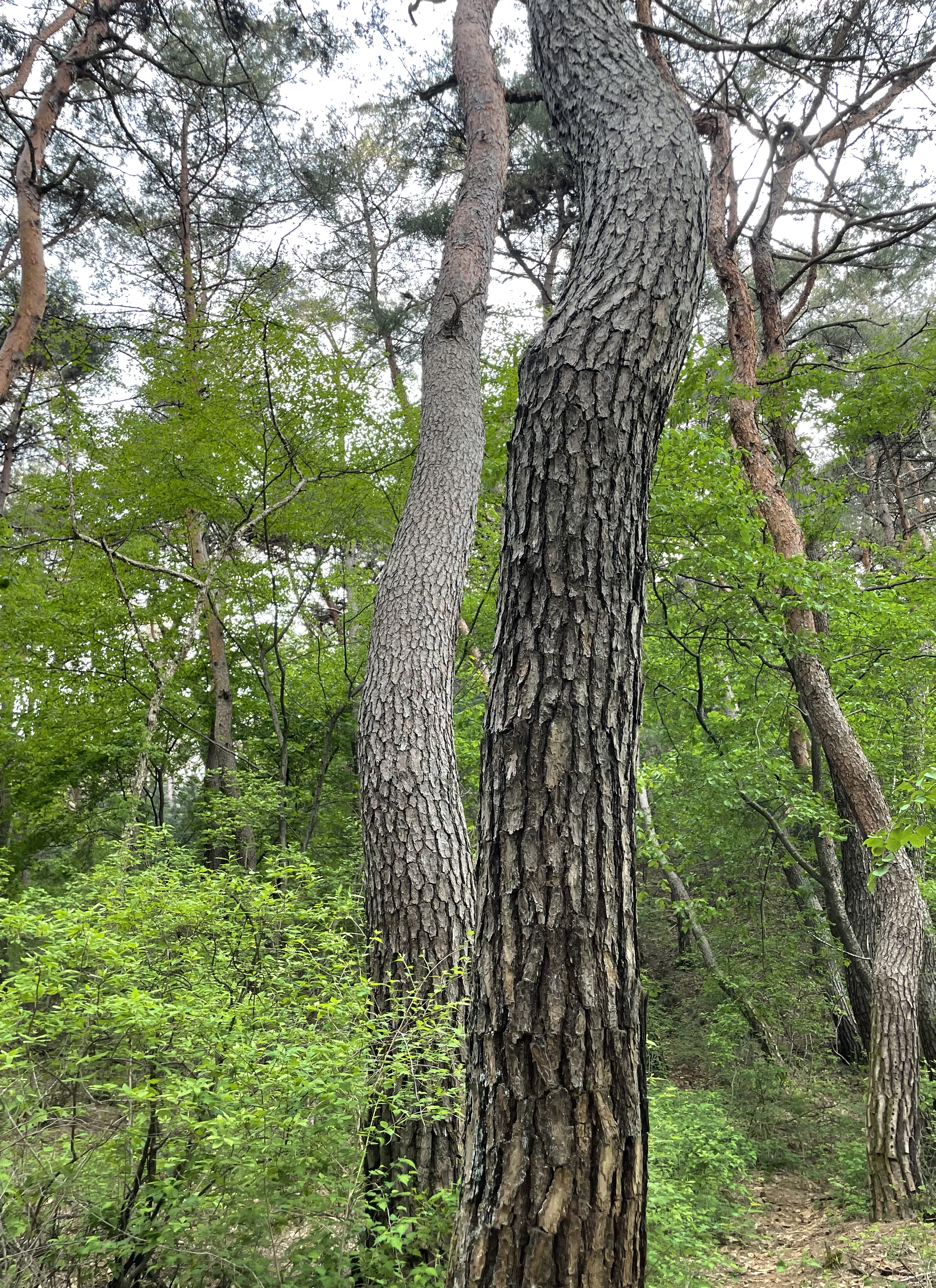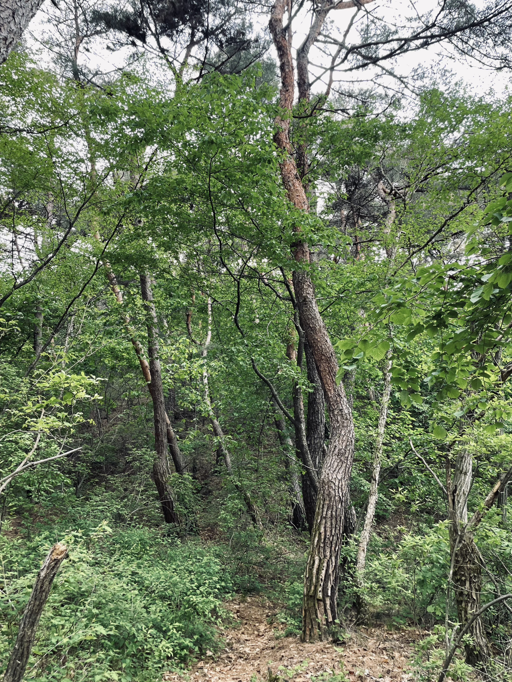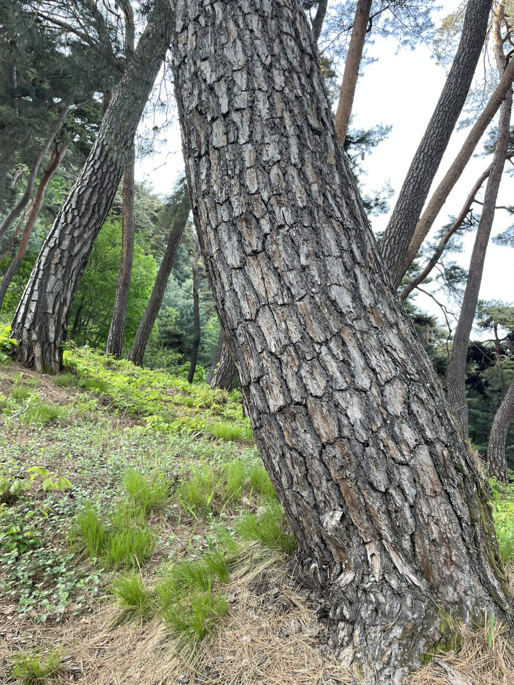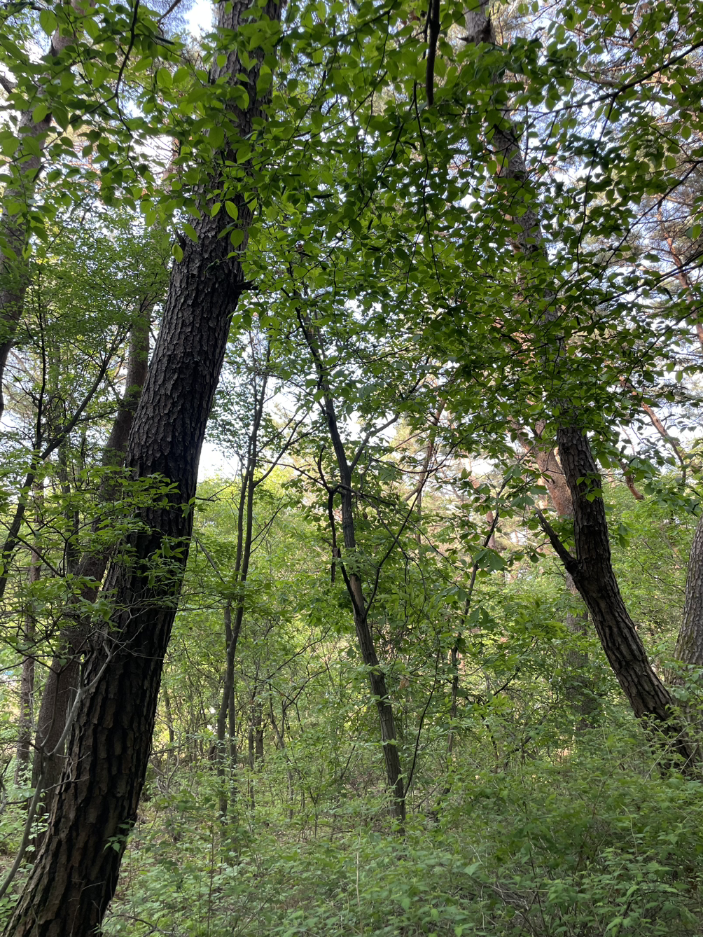지인에게는 매일 갈 수 있는 일상의 산책길이지만 도시에서 잘 다듬어지고 관리된 등산길과 둘레길에 익숙한 나는 길조차 찾기 어려운 이 숲길이 무척 신선하다. 햇빛을 가리며 마구자란 나무들, 찌를 듯 거칠게 쓰러져 있는 나무통, 발바닥에 전해오는 수북한 솔잎과 전나무잎들 , 자연의 있는 모습 그대로를 대하니 숲을 향한 마음이 한껏 열린다. 한 걸음 한 걸음 다가가 인사 나누고 사귀고 싶어 진다.
