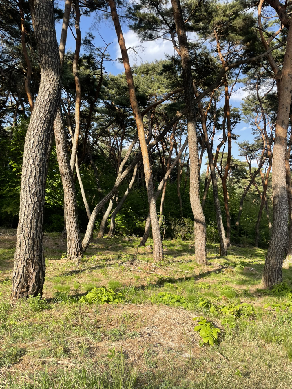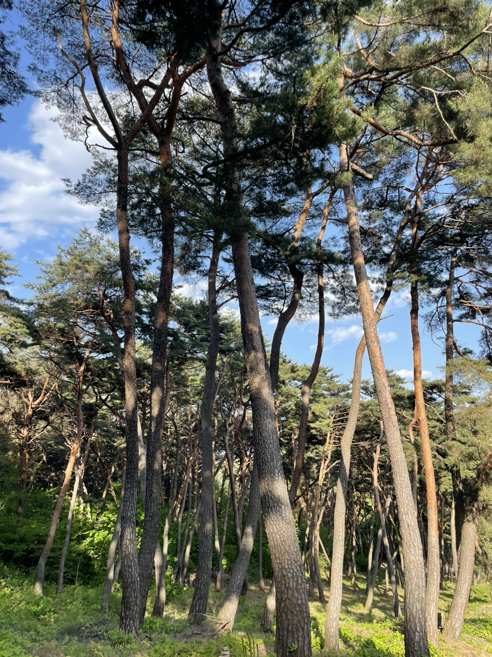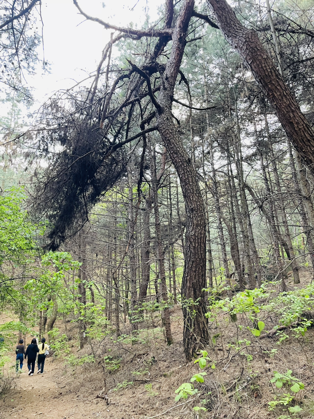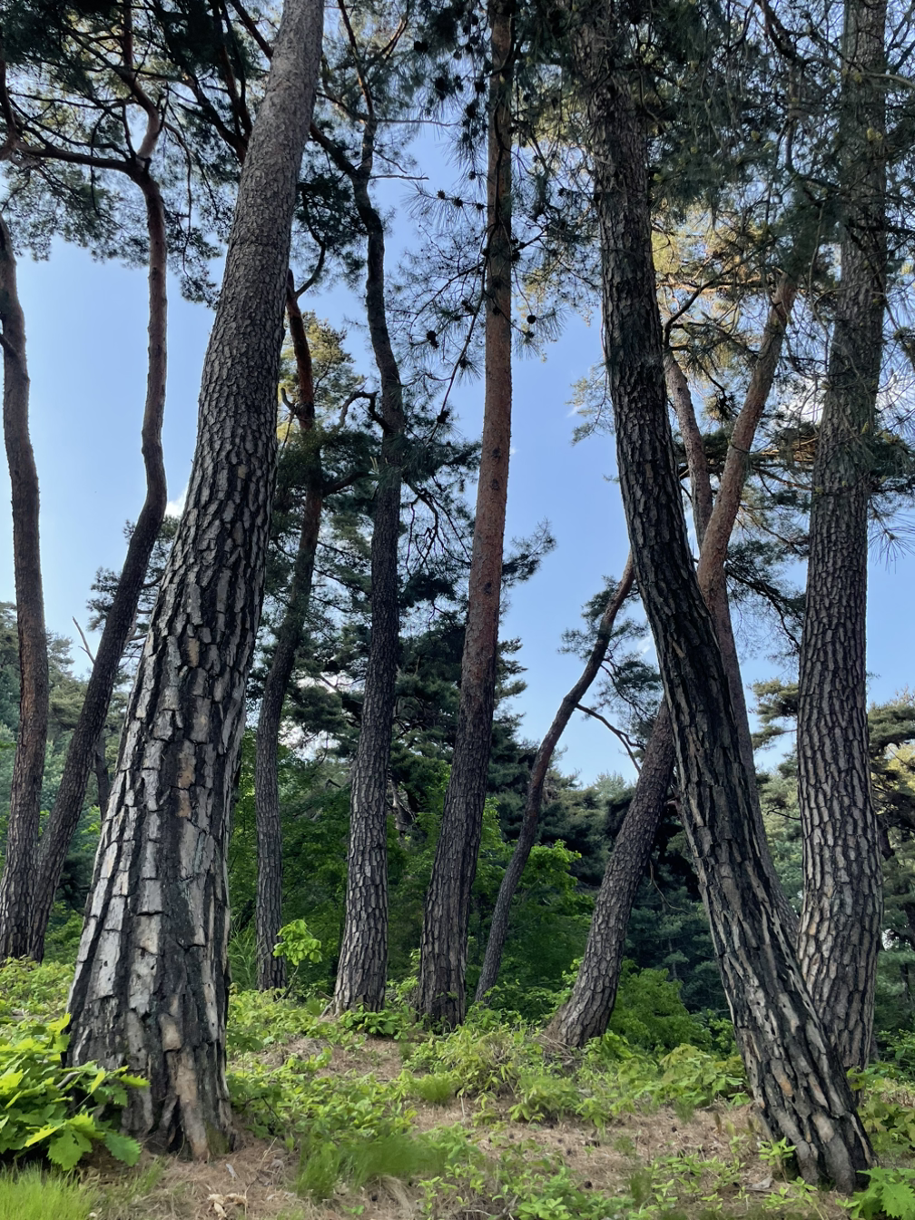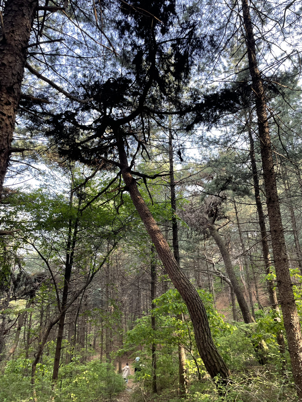 지인에게는 매일 갈 수 있는 일상의 산책길이지만 도시에서 잘 다듬어지고 관리된 등산길과 둘레길에 익숙한 나는 길조차 찾기 어려운 이 숲길이 무척 신선하다. 햇빛을 가리며 마구자란 나무들, 찌를 듯 거칠게 쓰러져 있는 나무통, 발바닥에 전해오는 수북한 솔잎과 전나무잎들 , 자연의 있는 모습 그대로를 대하니 숲을 향한 마음이 한껏 열린다. 한 걸음 한 걸음 다가가 인사 나누고 사귀고 싶어 진다.