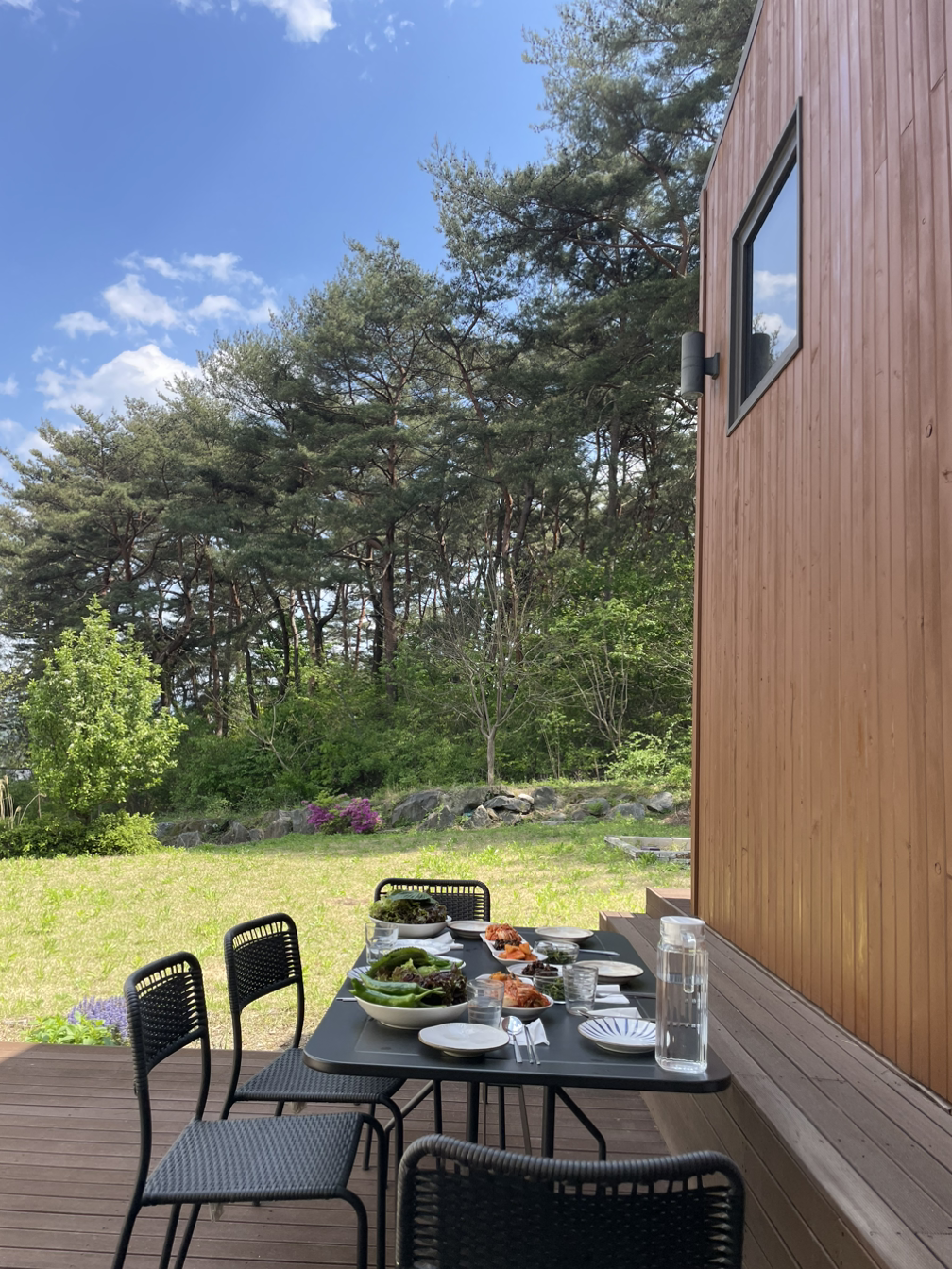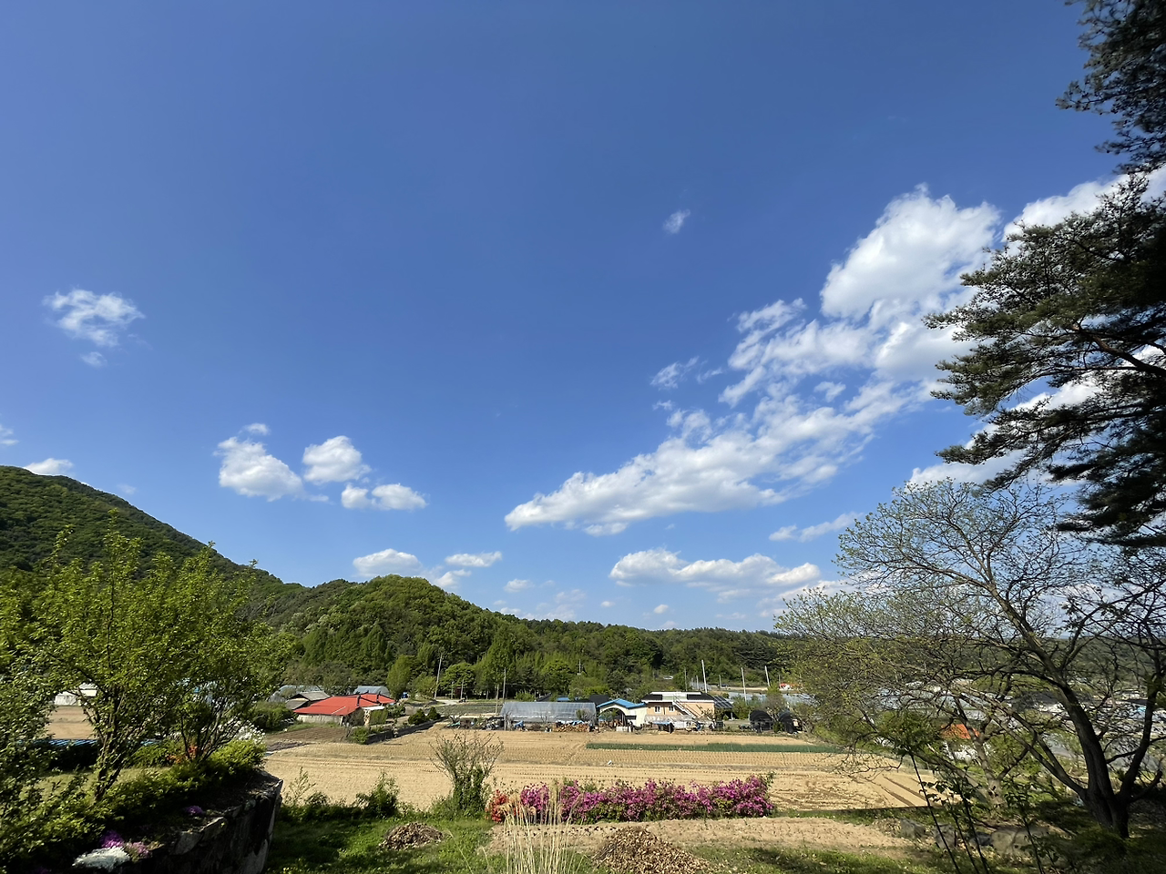 벌써 지은 지 5년이 되었다고 한다. 이번에 새로 말끔하게 외벽칠단장을 하고 초대받았다. 텃밭 가꾸고 풀 뜯다 보면 하루해가 어떻게 지나는 줄 모른다고 한다.