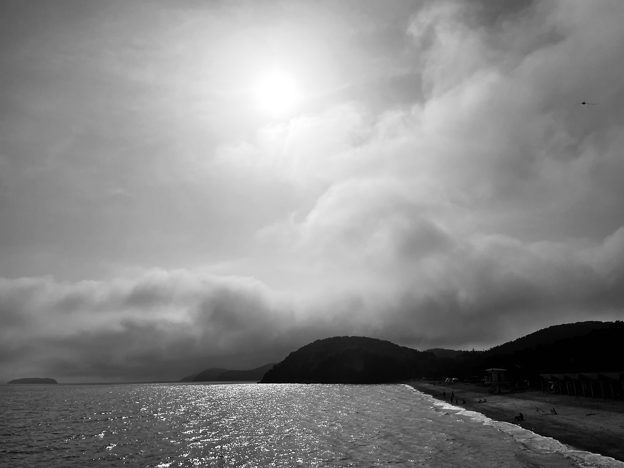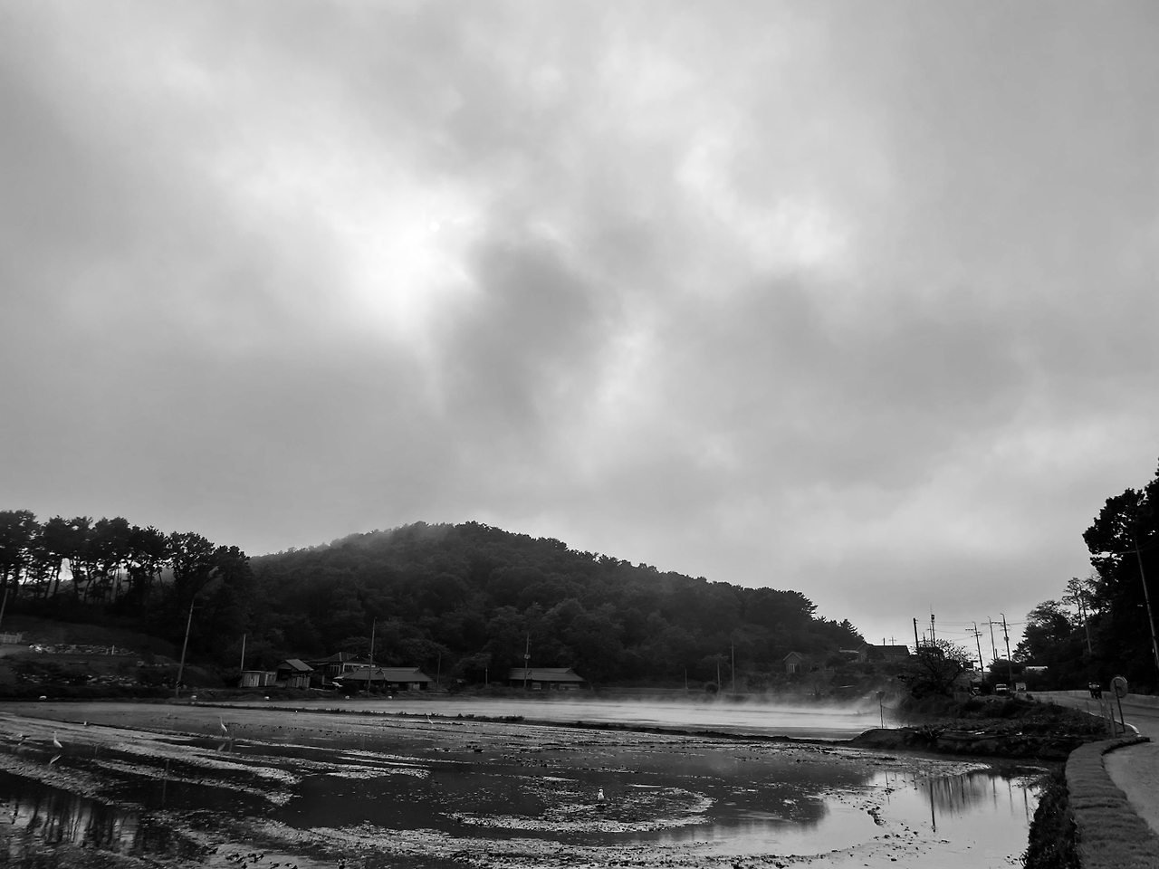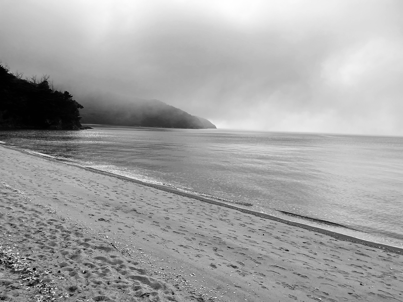 해무 낀 장봉도를 뒤로 하며 진천해변을 향해 오르던 오르막길의 깊은 산내음, 고요한 바다.