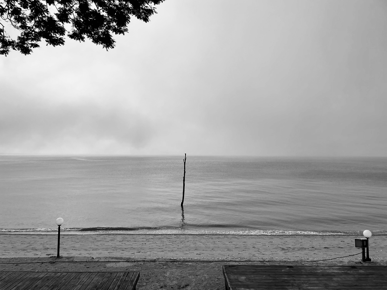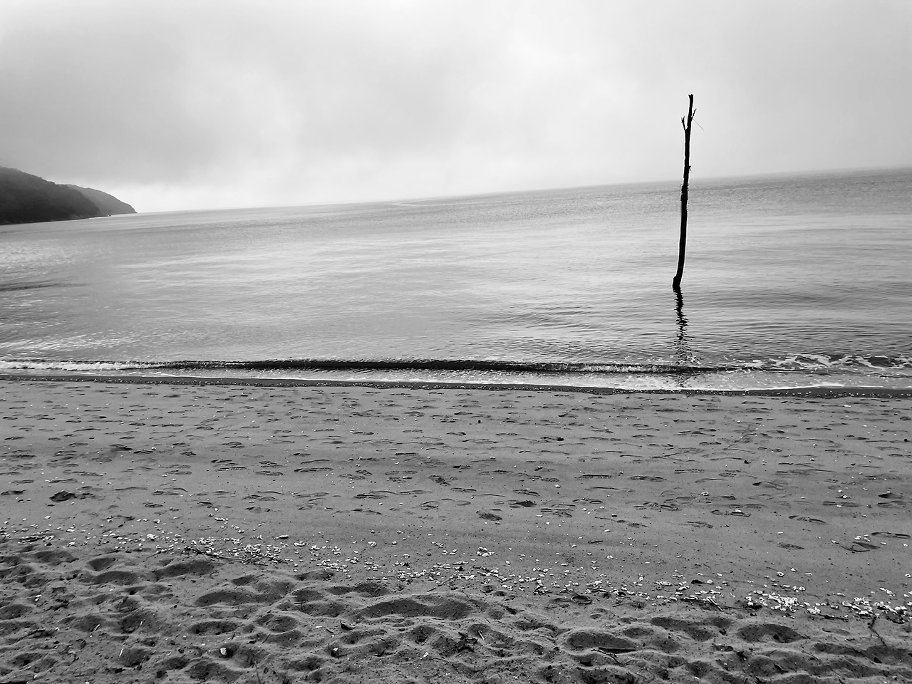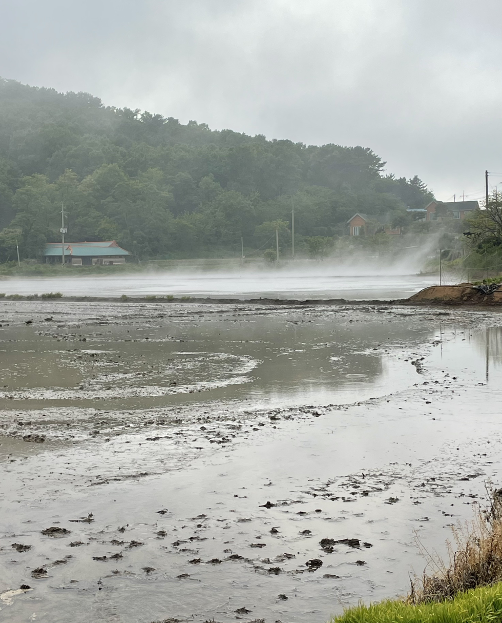 해무 낀 장봉도를 뒤로 하며 진천해변을 향해 오르던 오르막길의 깊은 산내음, 고요한 바다.