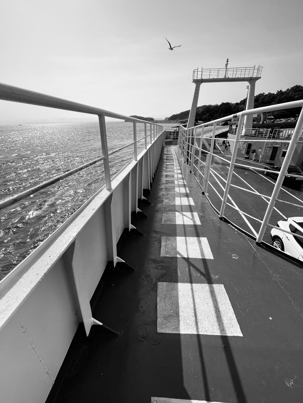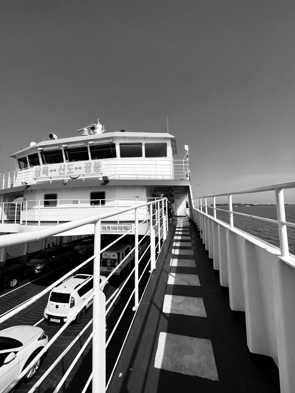 3개의 섬을 모두 둘러보는데 30여 킬로 밖에 안된다. 현재까지는 능선을 따라 바다를 바라보며 트래킹을 하는 도보여행이 좀 더 매력적이지 않았나 싶다. 물론 언제 누구와 함께 어떻게 갔느냐가 여행의 맛을 좌우하지만 말이다. 별 기대 없이 장봉도로 가는 배에 올랐다. 장봉도 초행길에 실망할게 염려스러우신지 안내하시는 분도 조심스레 장봉도를 찾는 분들은 많지 않다고 하신다. 역시나 신도행 배와는 달리 차도 사람도 별로 없었다. 20여분 바다 위를 달리는 선상에서 멀리 섬을 향해 해무가 밀려가는 모습이 보인다. 광활한 회색빛 바다에 부딪치는 햇살의 파편을 바라보며 잠시 잠깐이지만 그 옛날 바다를 지키셨던 이순신장군이 떠올랐다. 고마우신 분이다.