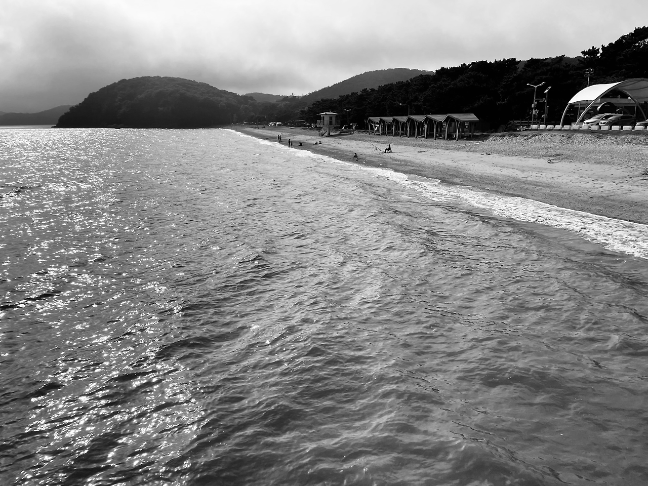 장봉도항을 내려서자 급격히 쌀쌀해진 날씨가 몰려왔다. 해무의 영향인지 물기 먹은 바람이 무겁고 차가웠다. 짧은 시간 새로운 공간으로의 이동이다. 신시모도에 보였던 청춘남녀의 발랄한 모습들은 사라지고 트래킹 복장의 그룹 지어 다니는 몇몇 중년팀들이 보일 뿐이다 짧은 고개너머 펼쳐진 옹암해변은 절로 우리를 멈추게 했다. 해변 주변으로 캠핑텐트가 옹기종기 보였지만 전망대위에 펼쳐지는 춤추는 해무에 어우러진 해변의 모습과 바다풍경은 장관이었다.