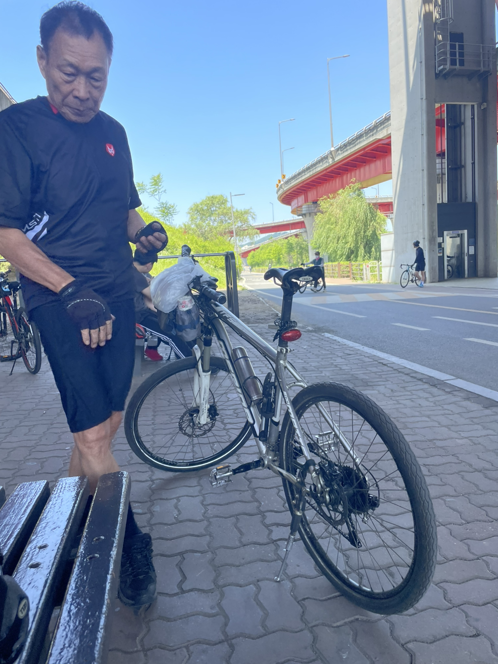 탄천을 지나 성수대교로 가는 길에 비실비실 뒷바퀴에서 바람이 빠지고 있었다. 막 영동대교를 지나던 참이라 탄천으로 돌아가느니 반포까지 가보자고 앞바퀴에 체중을 실어가며 달렸다. 하지만 성수대교도 못 미쳐 뒷바퀴바람은 완전히 빠진 상태였다. 가벼운 마음과 복장으로 나선 한강길이라 미처 이동식 소형펌프장비를 챙기지 못했다. 혹시나 하는 마음으로 성수대교밑 작은 쉼터까지 자전거를 끌고 갔는데, 마침 소형펌프를 메단 자전거를 발견했다. 두리번거리며 자전거의 주인을 찾아 도움을 청하니 기꺼이 도와주신다. 튜브를 교체하고 바람을 넣는데, 웬걸 펌프가 제대로 작동을 안 한다. 안타깝지만 고치는 것을 포기하고 주섬주섬 정리를 하니 의인은 자기 자전거를 내어주며 탄천에 가서 바람을 넣어오라 권하신다. 15년간 함께해 온 애마를 선뜻 내어주시는 것이다. 그리곤 배낭에 넣어온 커피를 꺼내시며 내게 건넨다.