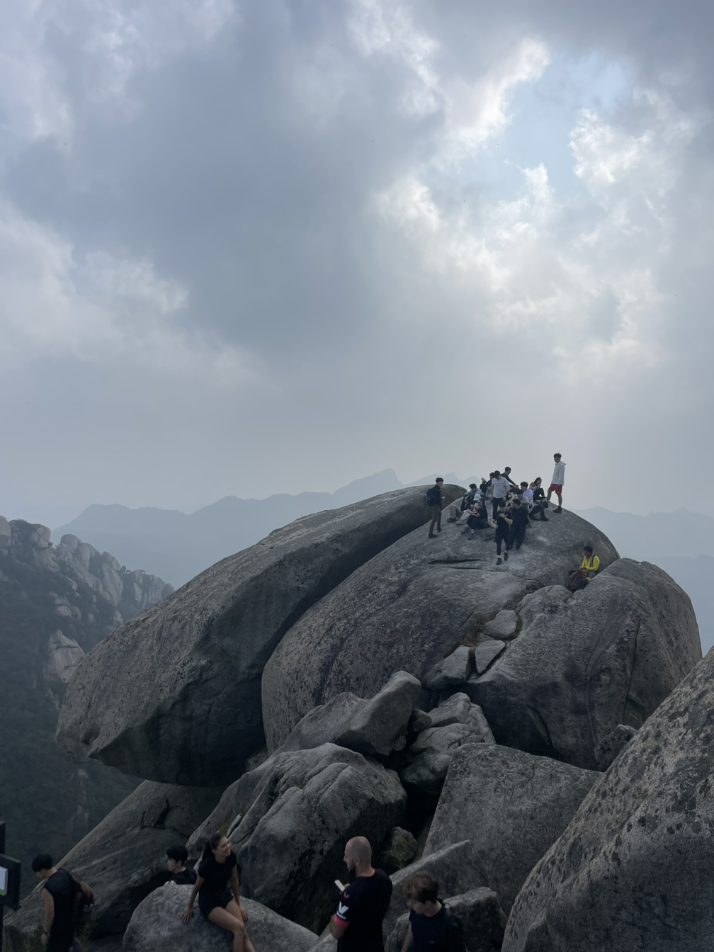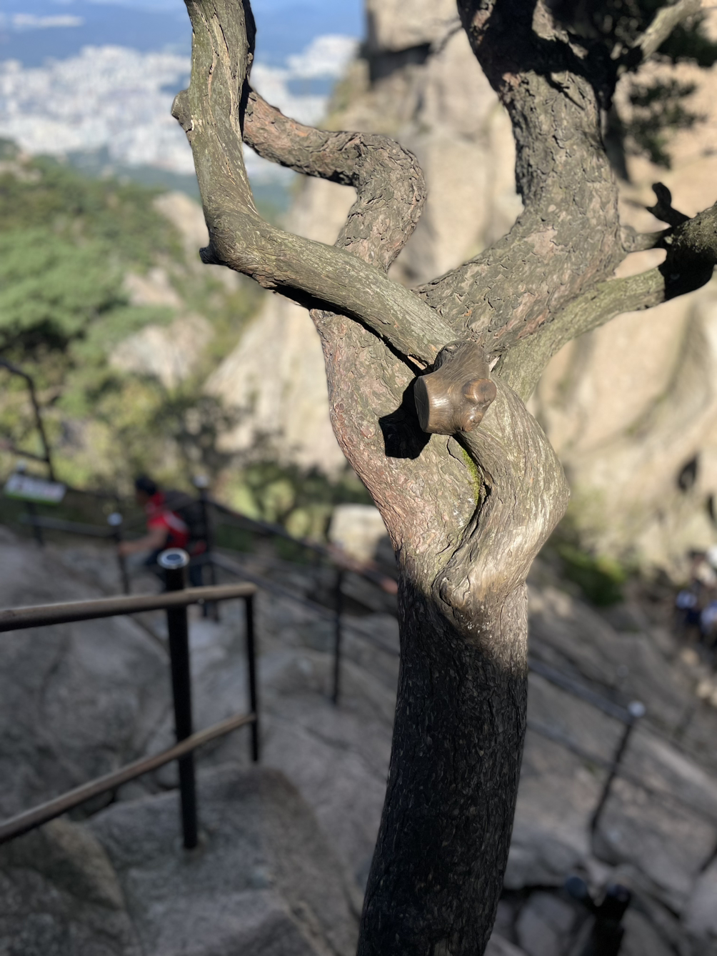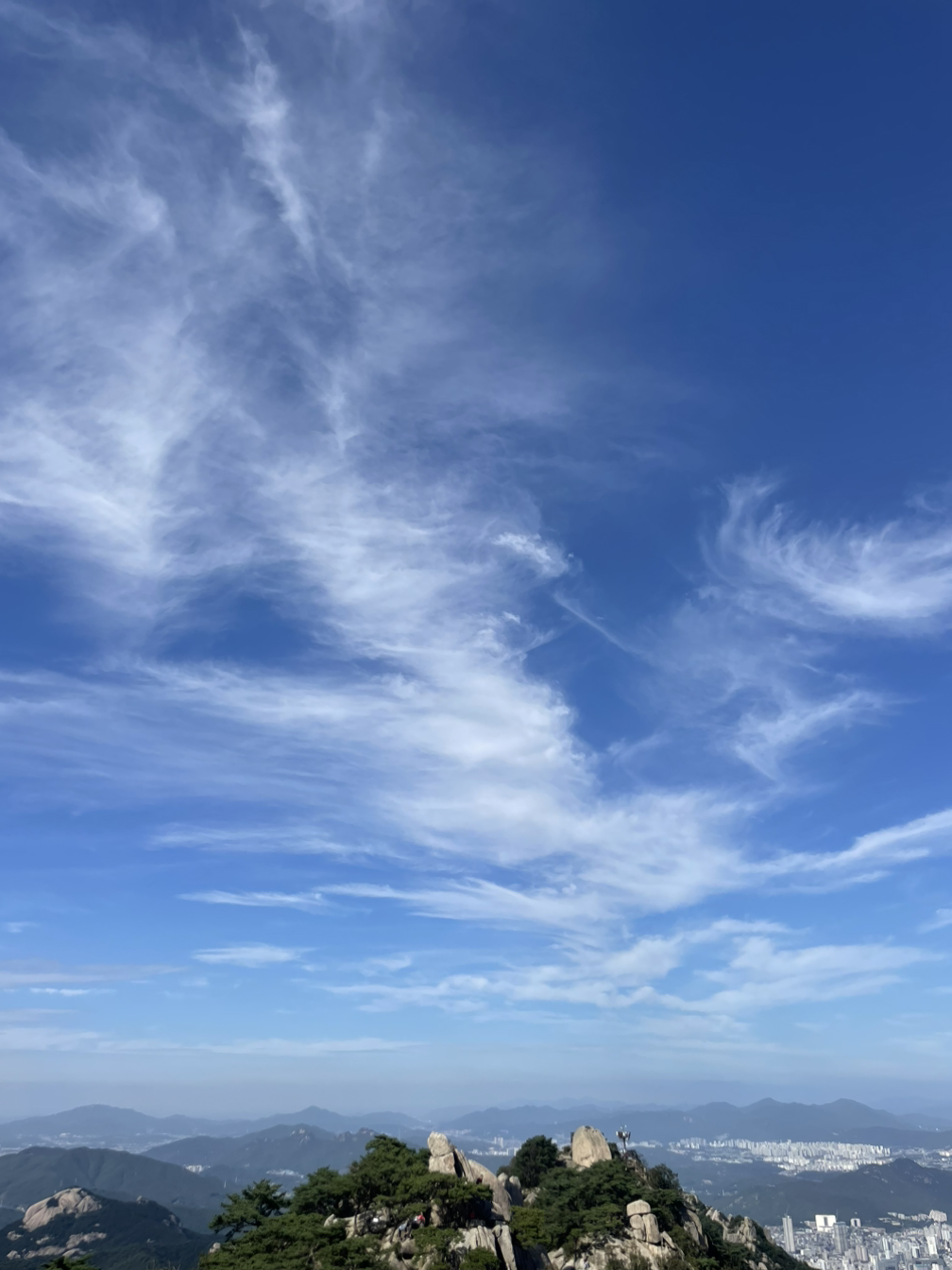 가파른 바위산길, 홀로 오르는 길이지만 맘은 편안하다. 힘들면 쉬고 걷는 속도도 그저 내 몸상태에 맞추면 된다. 한걸음 한걸음 체중을 엉덩이에서 허벅지, 종아리, 발끝까지 옮겨가며 리드미컬하게 오른다. 내딛는 걸음걸이에 멀리 떨어져 있는 가족들에 대한 그리운 마음 실어본다. 짬짬이 쉬면서 물을 마시고 가져온 사과조각으로 갈증을 풀어준다. 정말 꿀맛이다. 어느새 걷다 보니 정상에 가까웠다. 이곳은 이미 국제적인 명소가 되었다. 백운대 너른 바위 위에 다양한 국적의 많은 젊은이들이 활기찬 모습으로 가득하다. 곳곳에서 탄성이 울려 퍼진다.