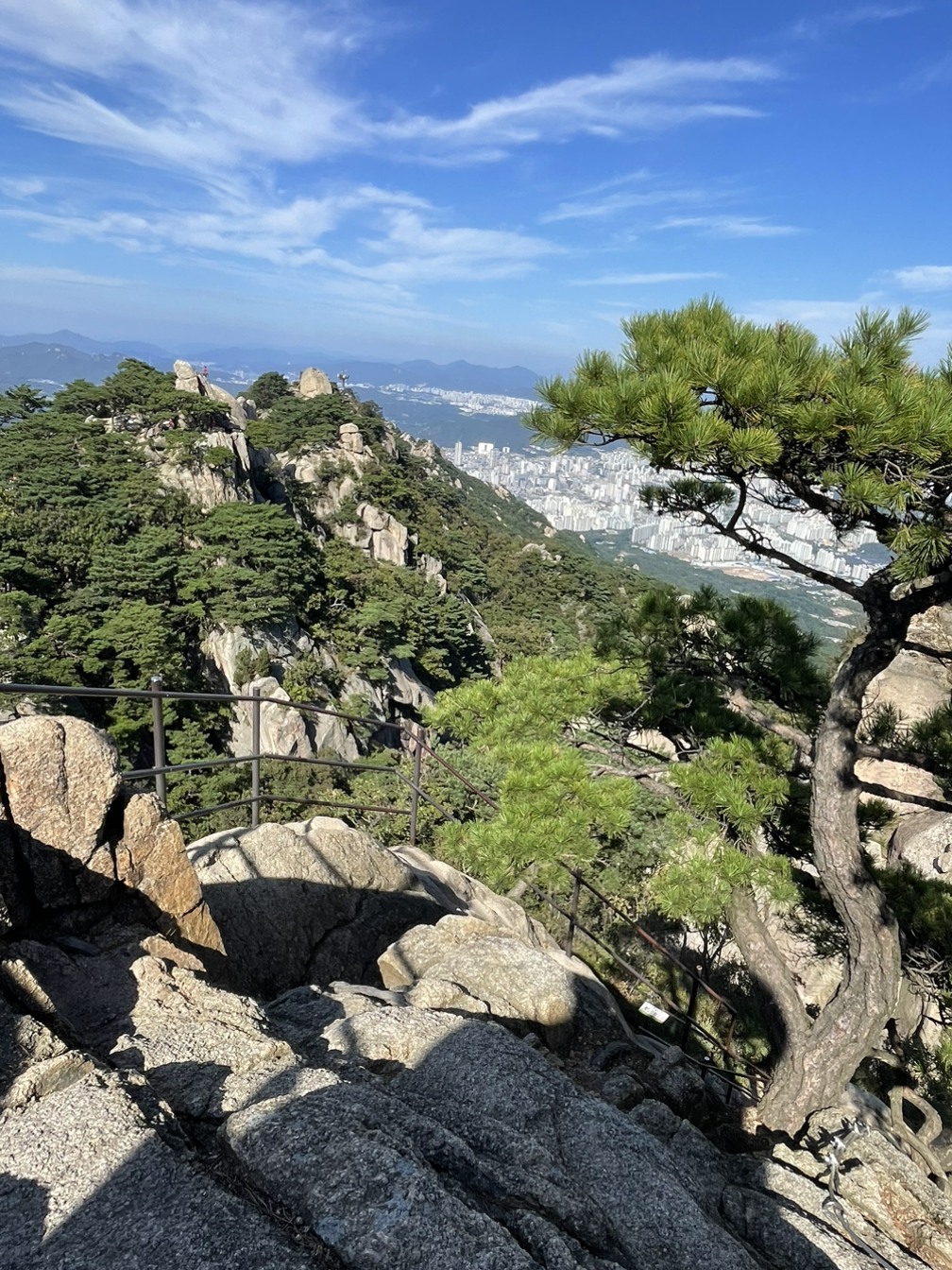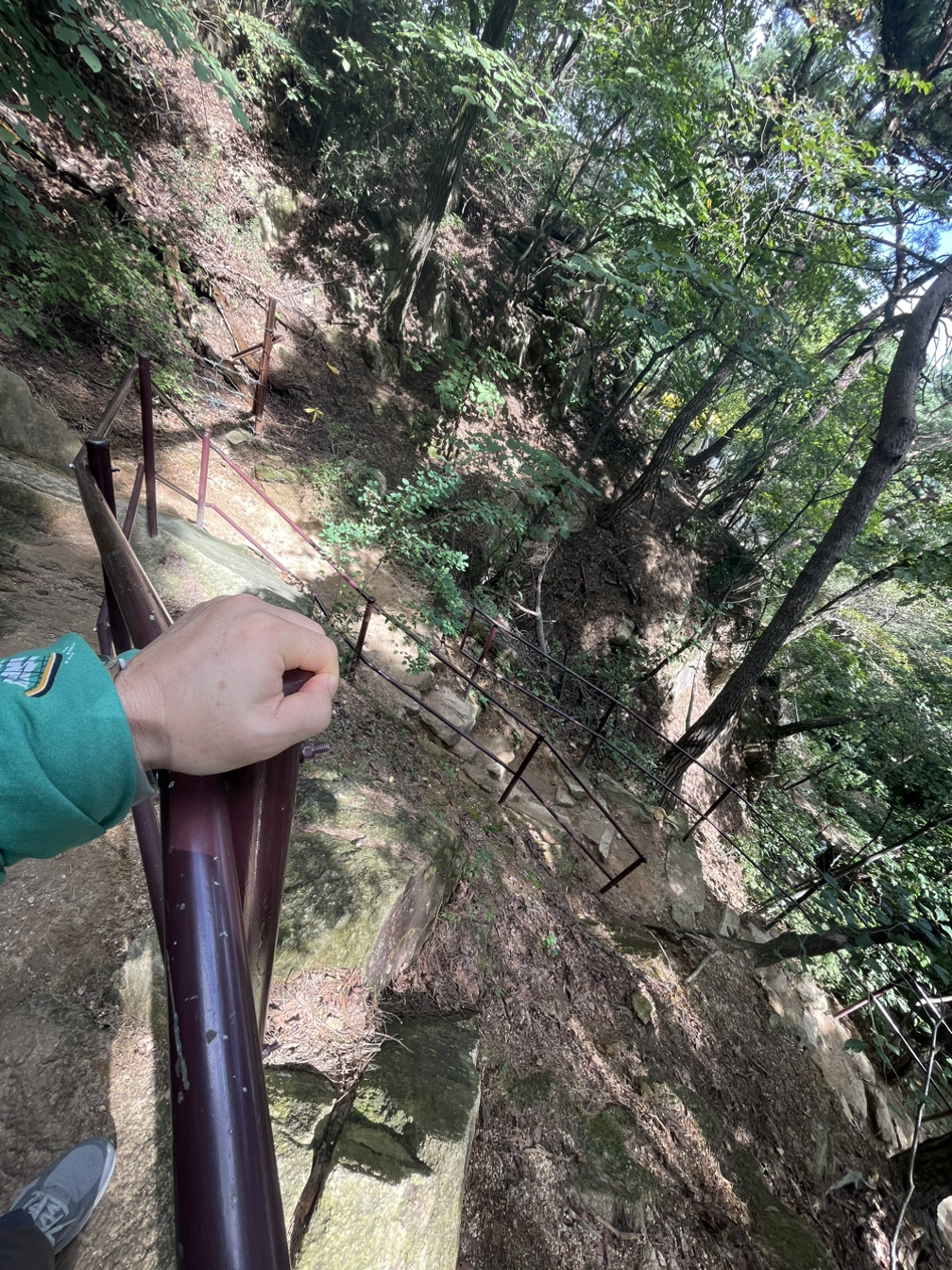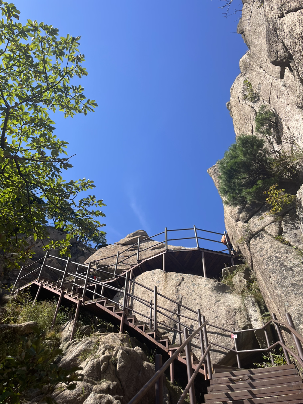 촘촘한 계단을 지나 신선대에 오르는 가파르고 좁은 암벽길은 철봉손잡이에 온몸을 맡겨야 간신히 오를 수 있다. 쫄깃해지는 심장을 심호흡으로 달래며 온정신을 내딛는 발걸음과 쥐어잡은 손에 집중해야만 했다.