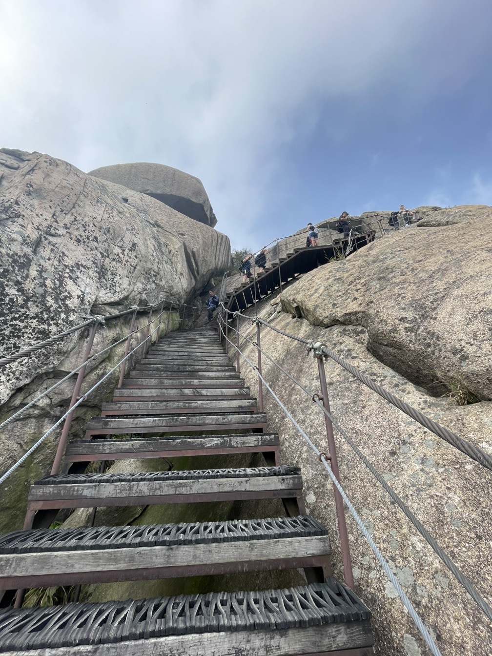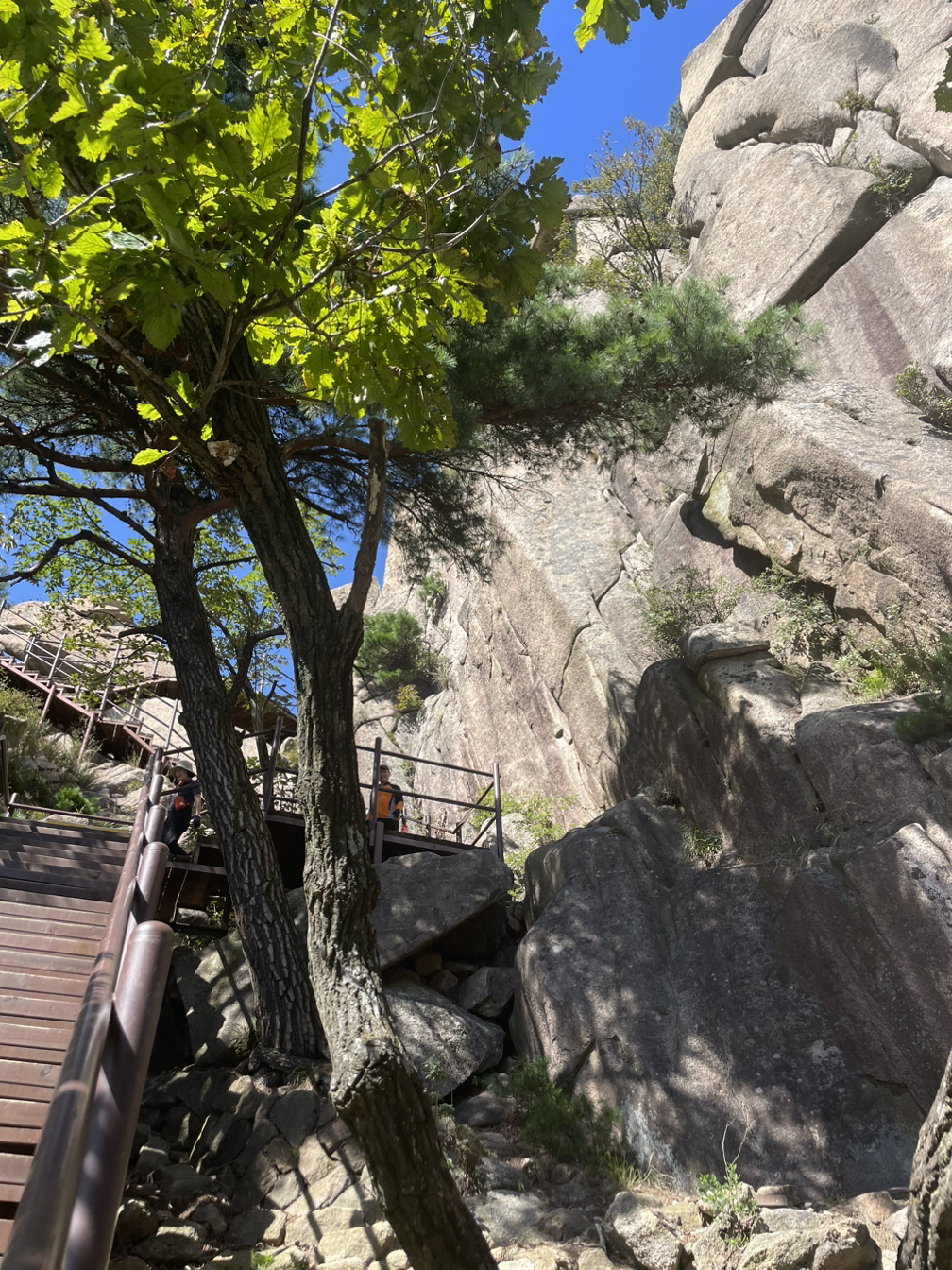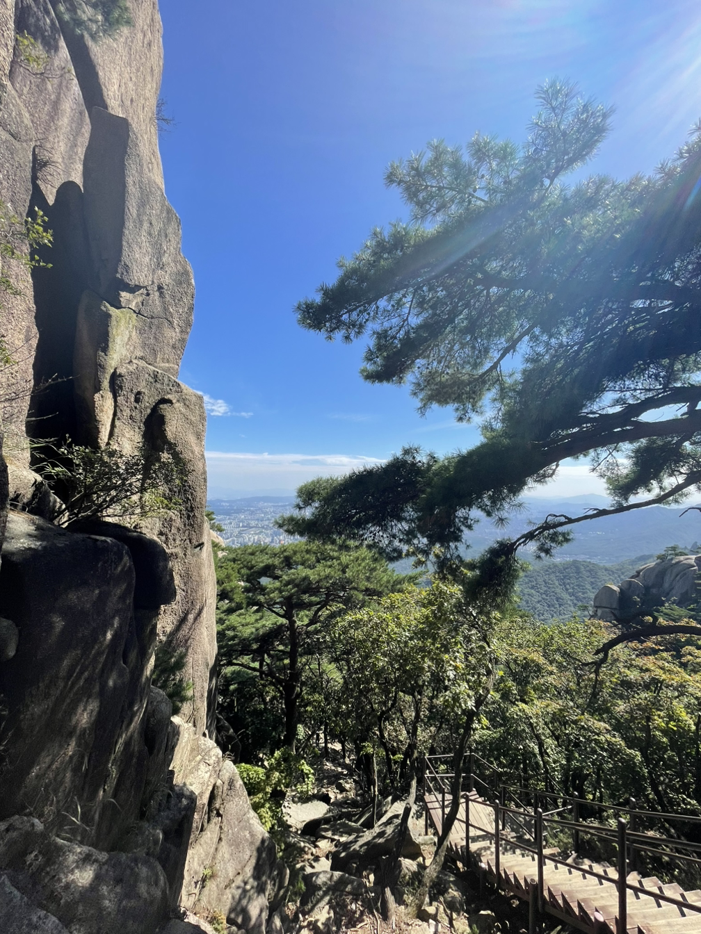 촘촘한 계단을 지나 신선대에 오르는 가파르고 좁은 암벽길은 철봉손잡이에 온몸을 맡겨야 간신히 오를 수 있다. 쫄깃해지는 심장을 심호흡으로 달래며 온정신을 내딛는 발걸음과 쥐어잡은 손에 집중해야만 했다.