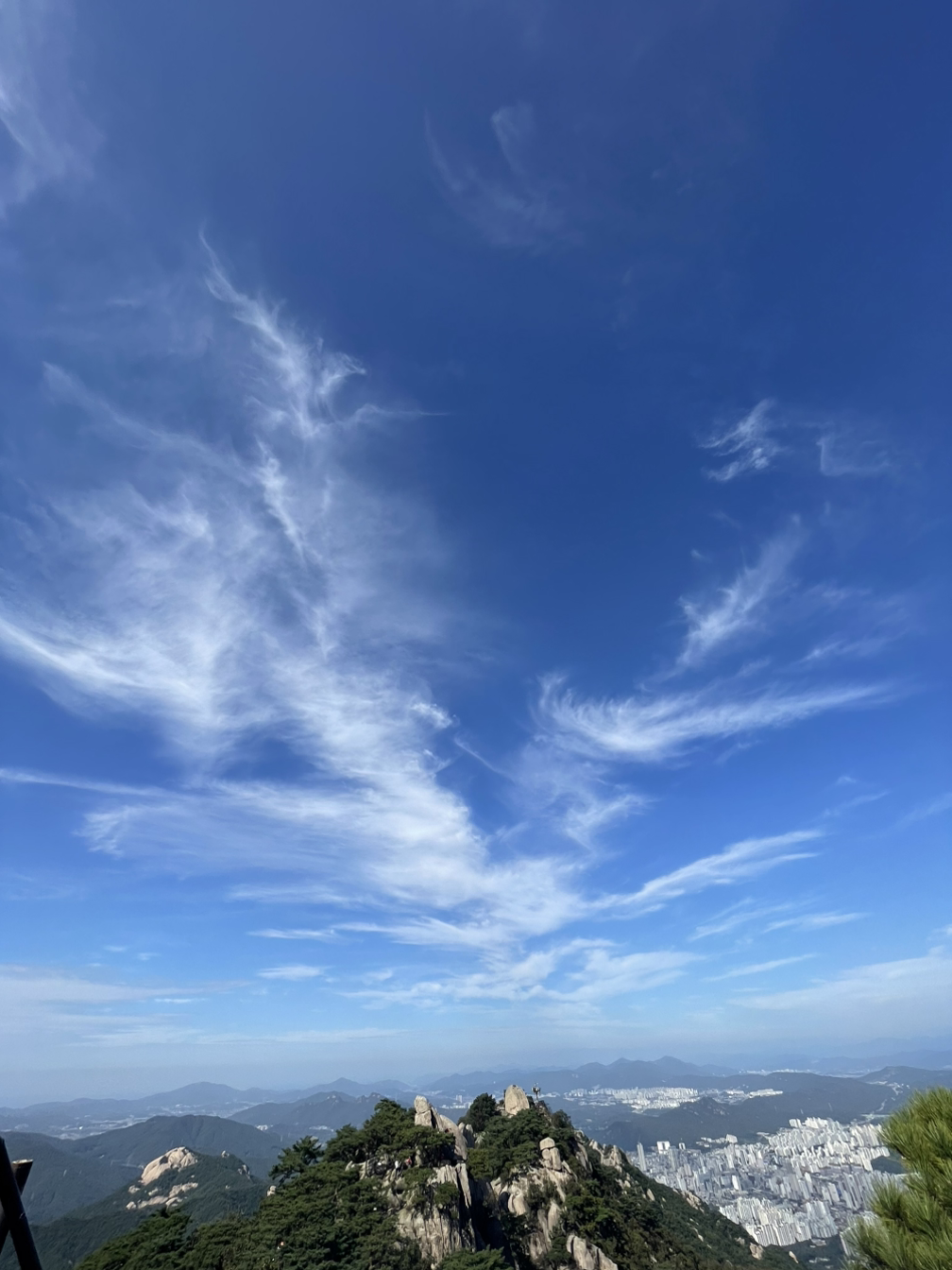 회색빛 구름과 사이사이 빛나는 흰구름 하늘이 800미터 정상과 만나 덩실덩실 춤을 추며 내게 손짓한다.